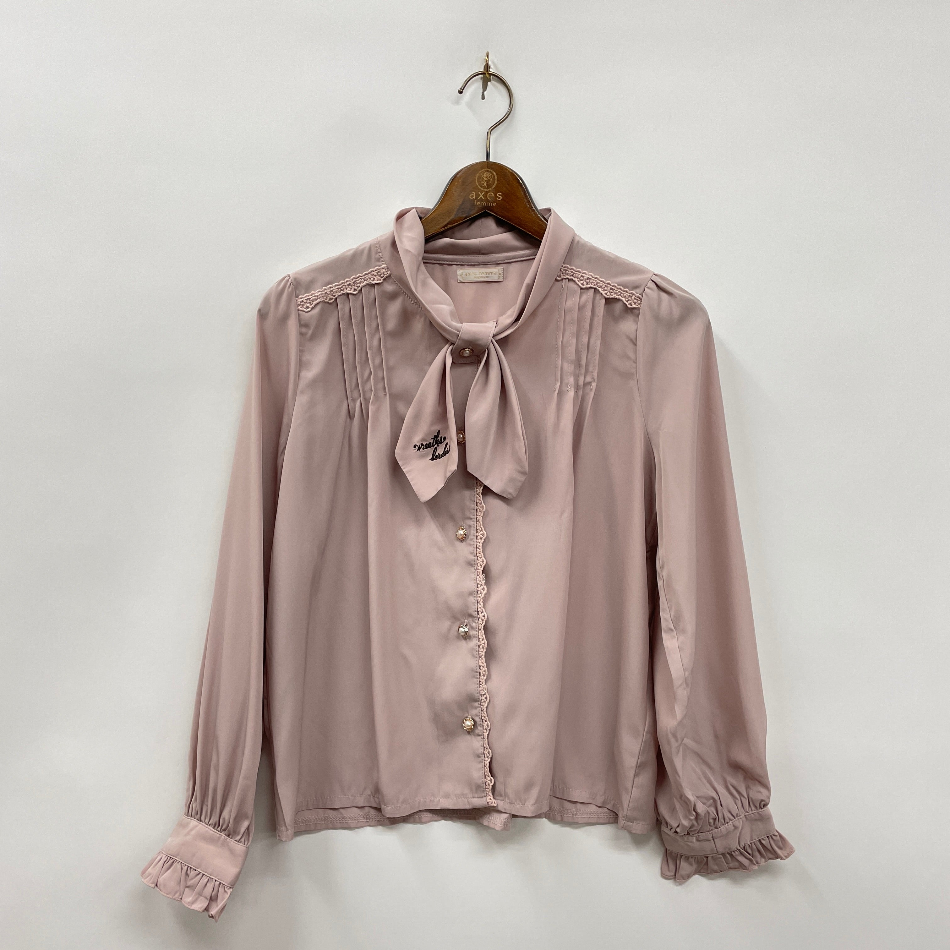 刺繍ボータイブラウス