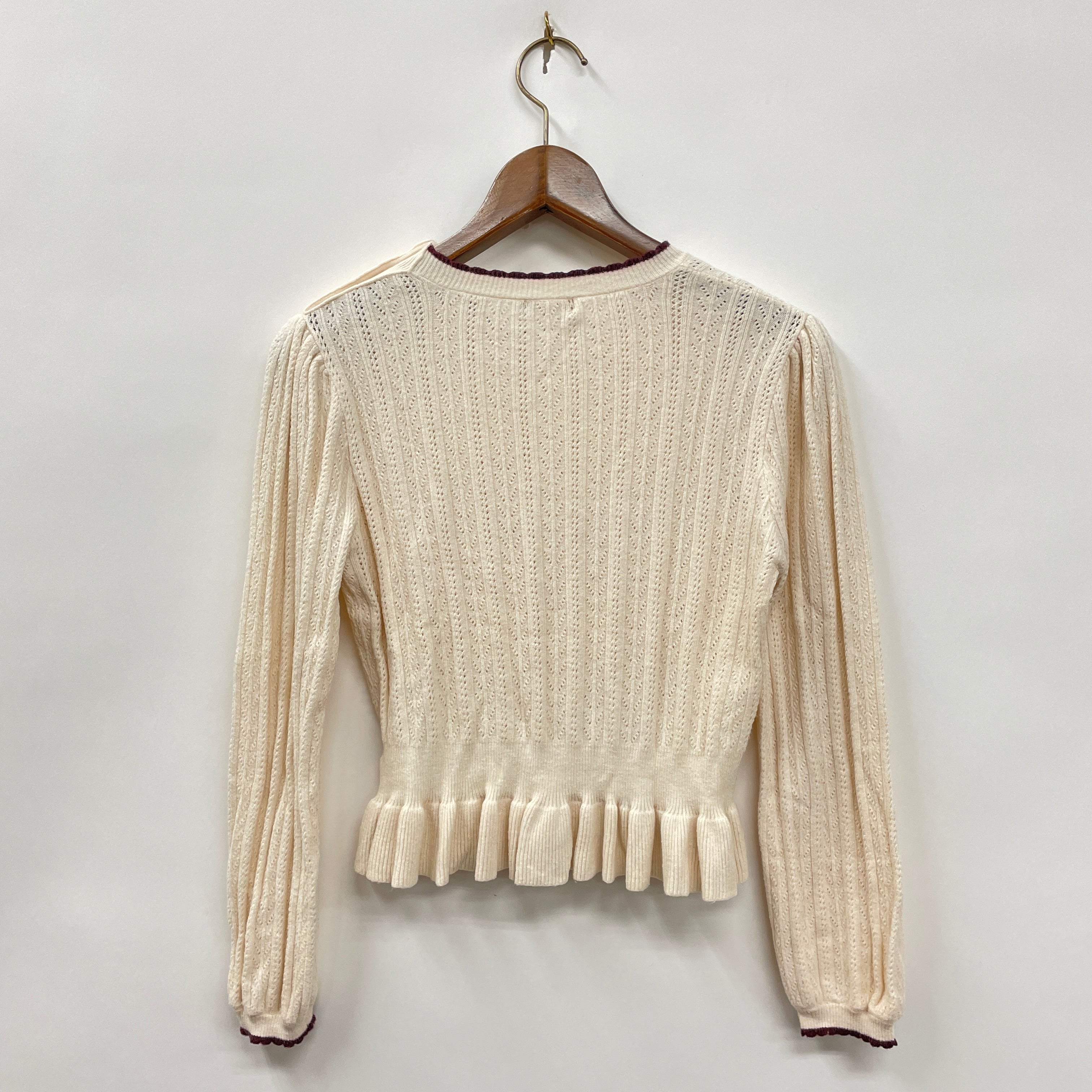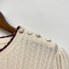 透かし柄のベーシックなニットに加えたボタンデザインや、襟ぐりと袖口のポイントカラーがアクセントに♪