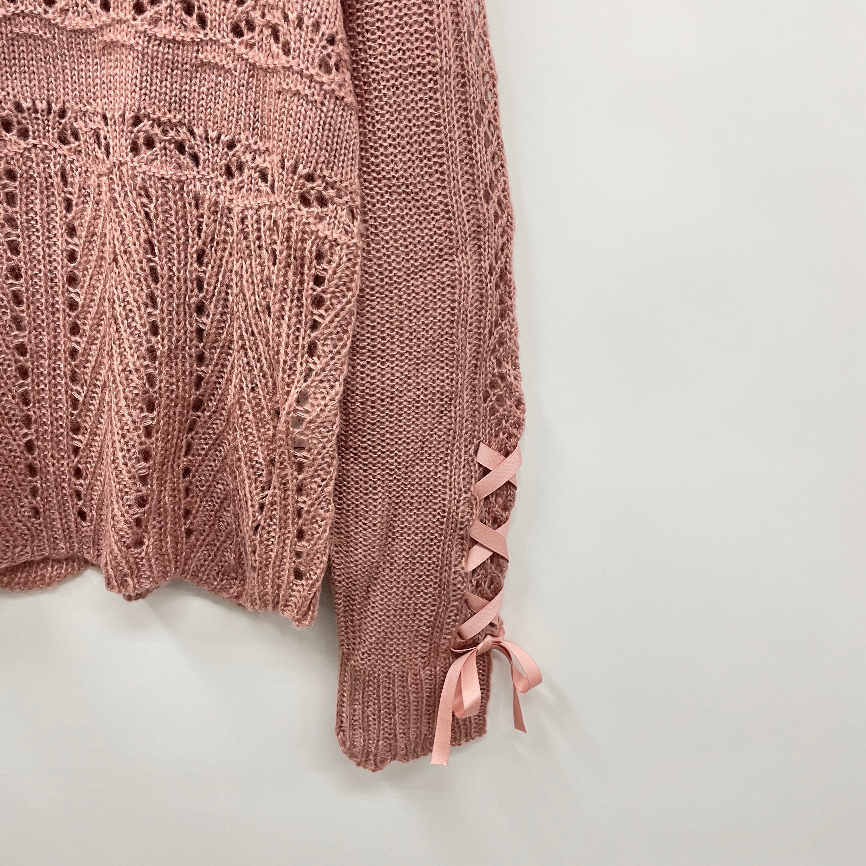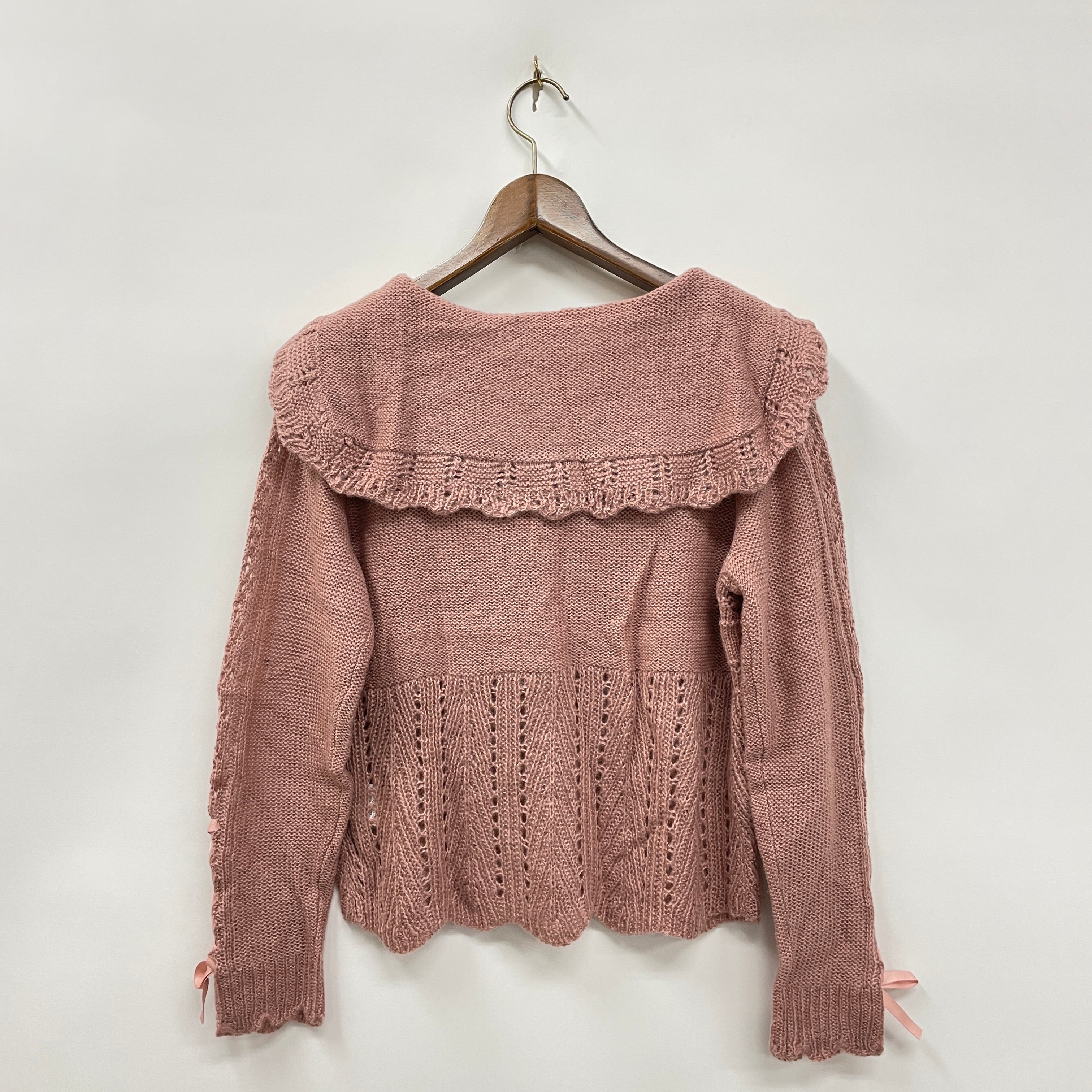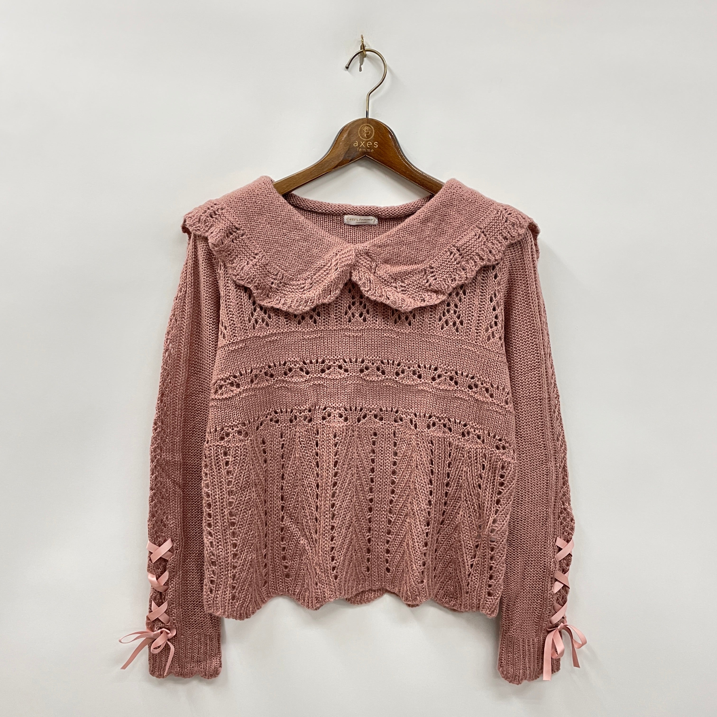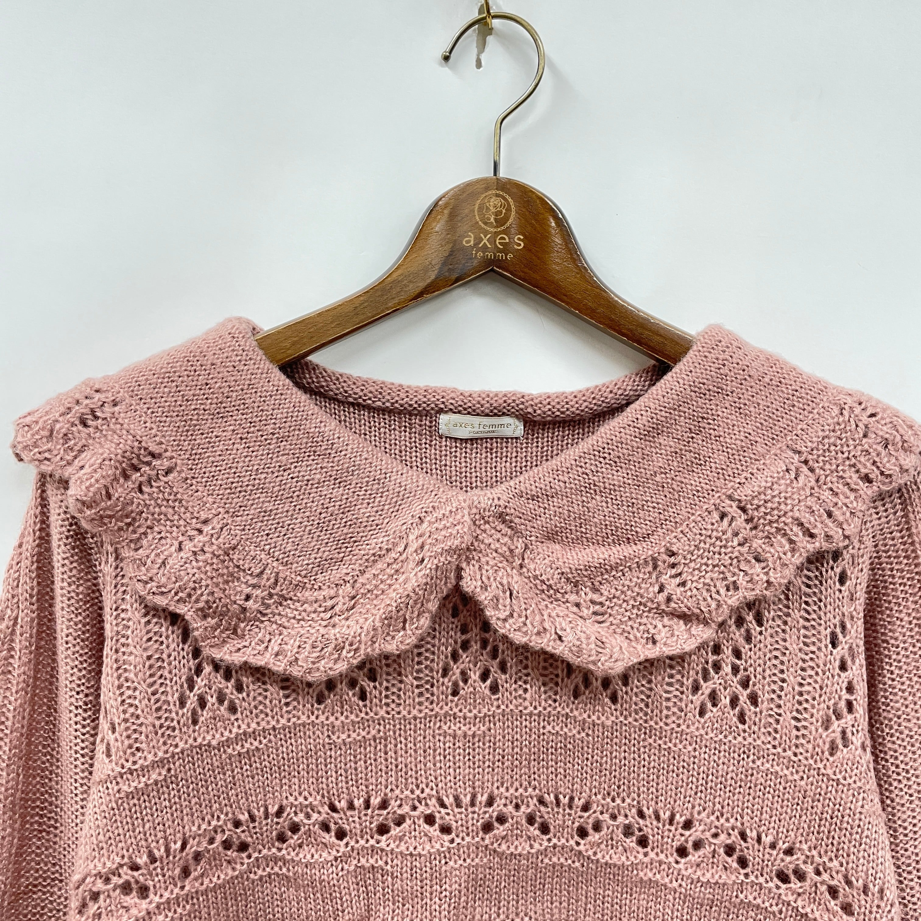 セーラー衿と透かし編みがガーリーな印象を与えてくれるニットプルオーバー。