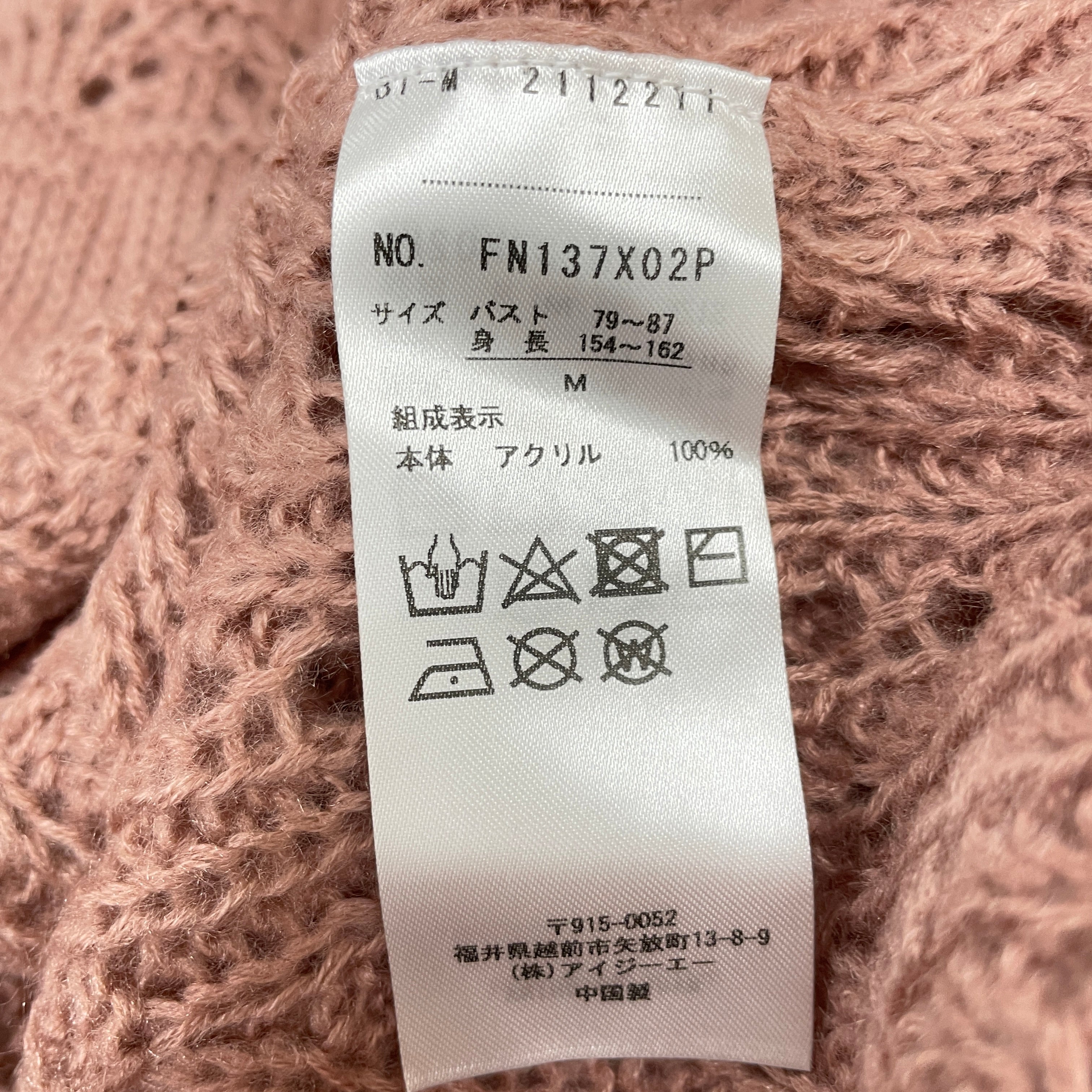 | サイズ | 着丈 | バスト | 肩幅 | 袖丈 | 袖口 |