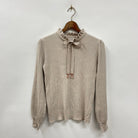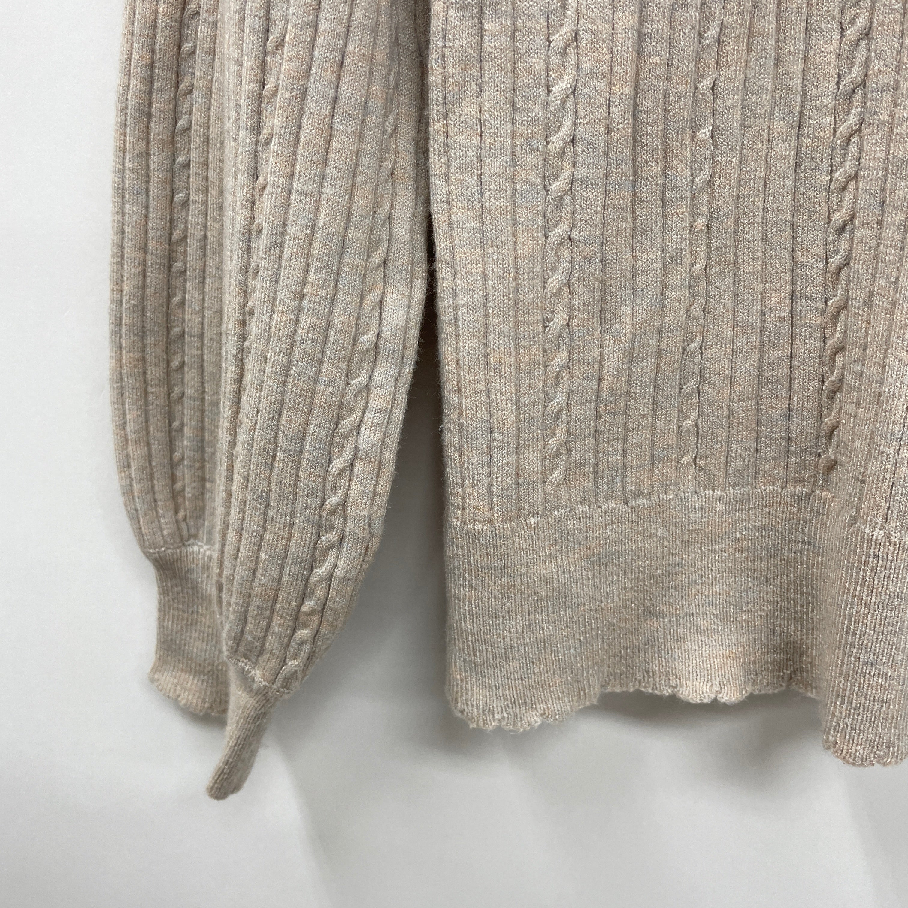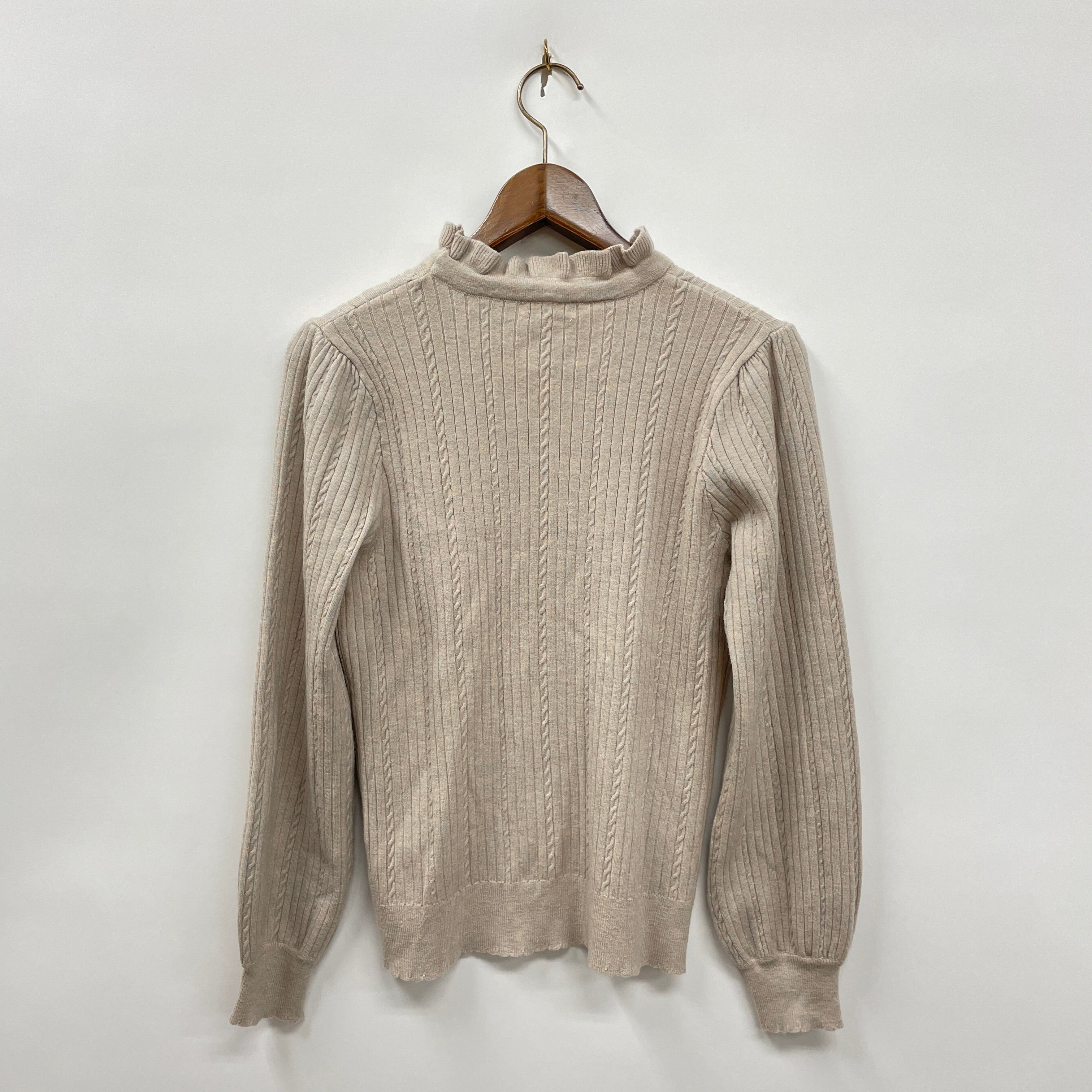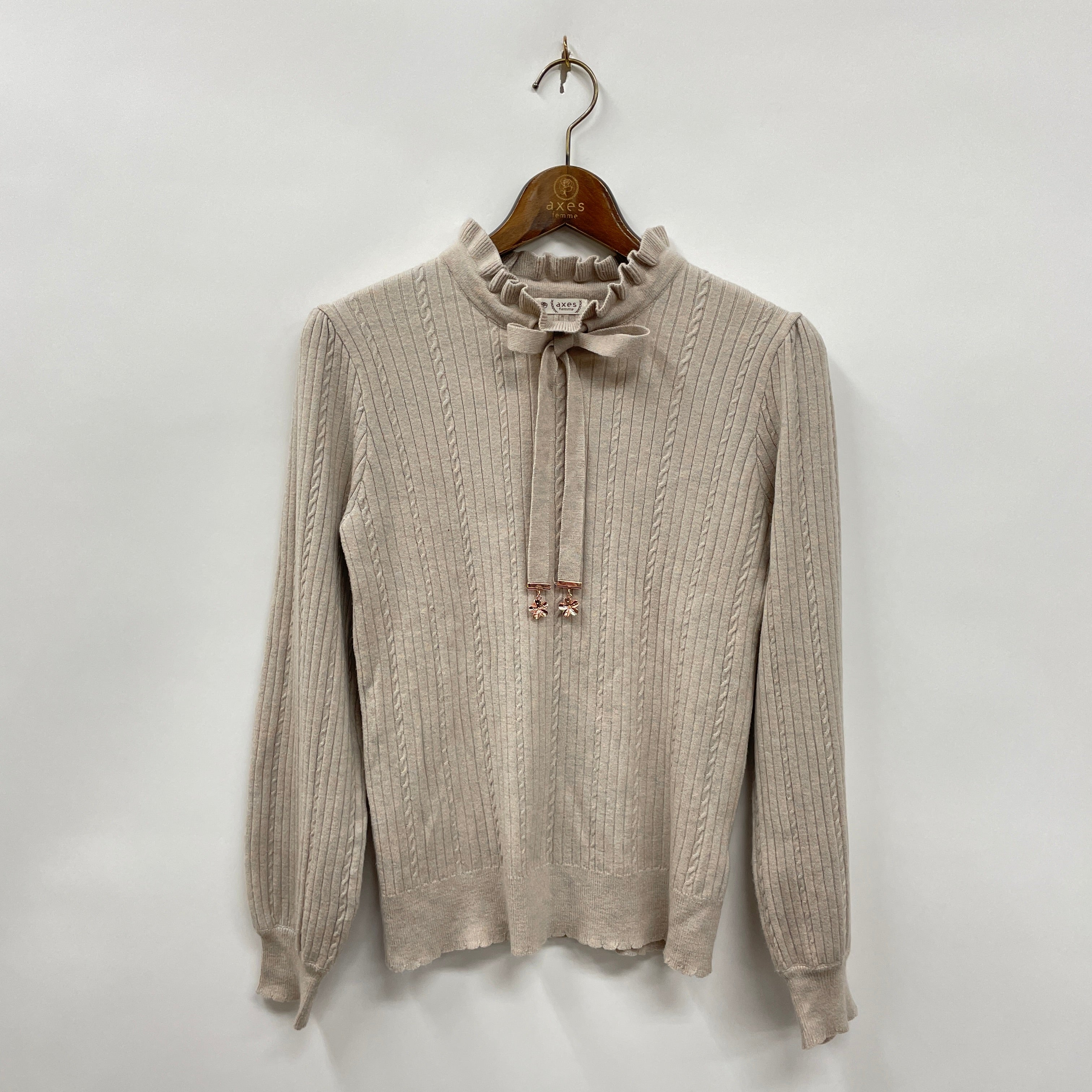 すっきりとしたプチハイネックは、フリル仕様でさりげない華やかさをプラス。