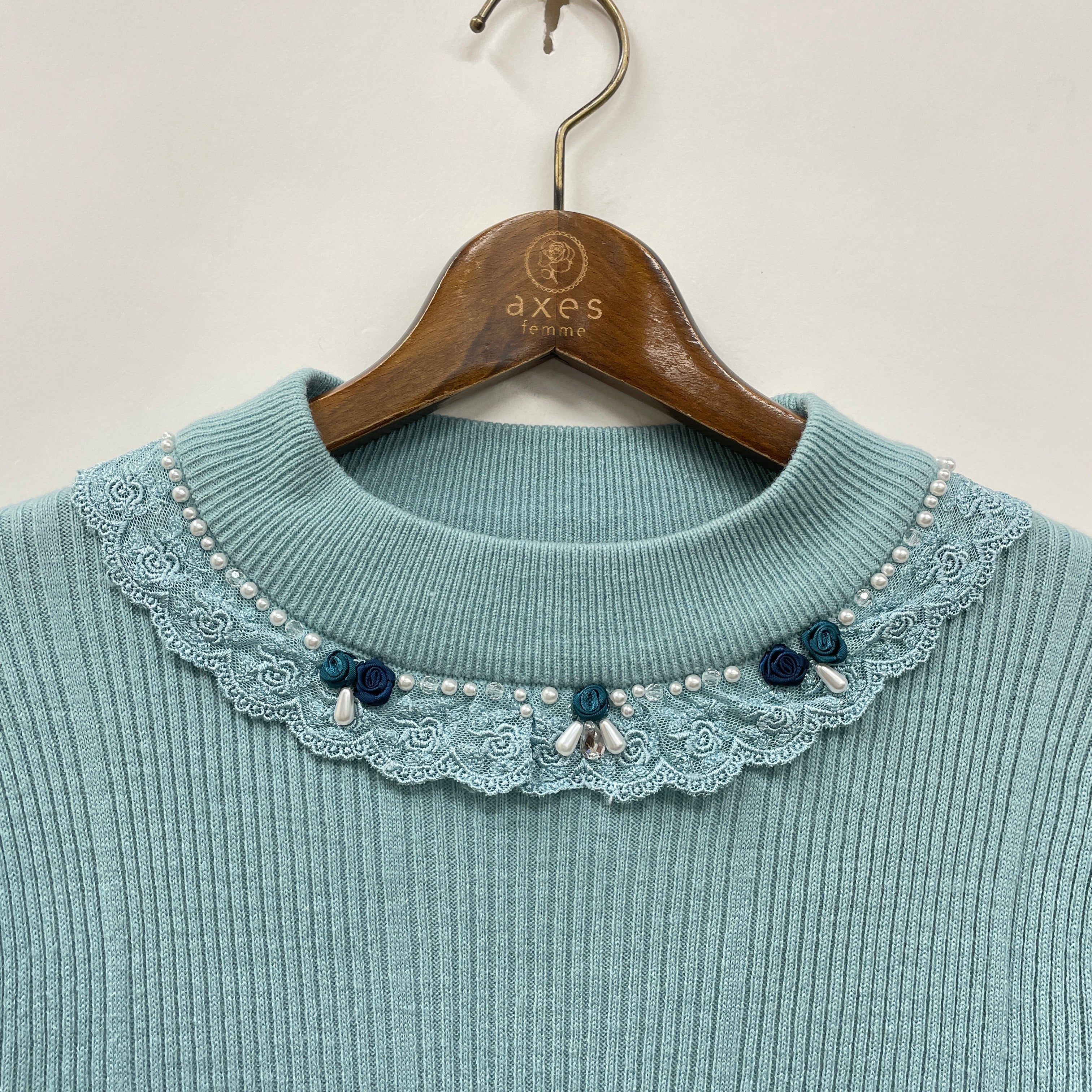 袖口にもバラやパール・ビジューを施し、ワンポイントデザインをプラス。