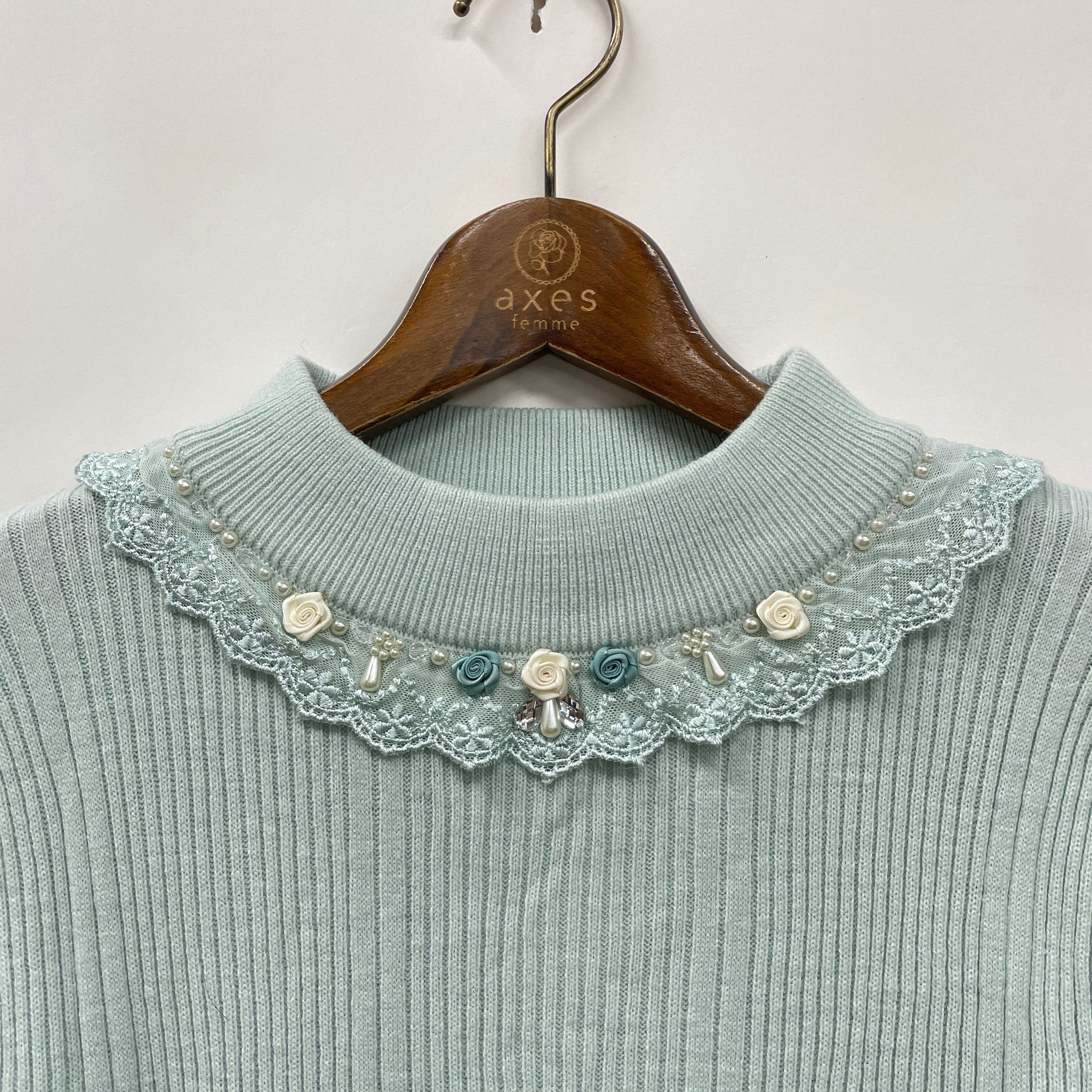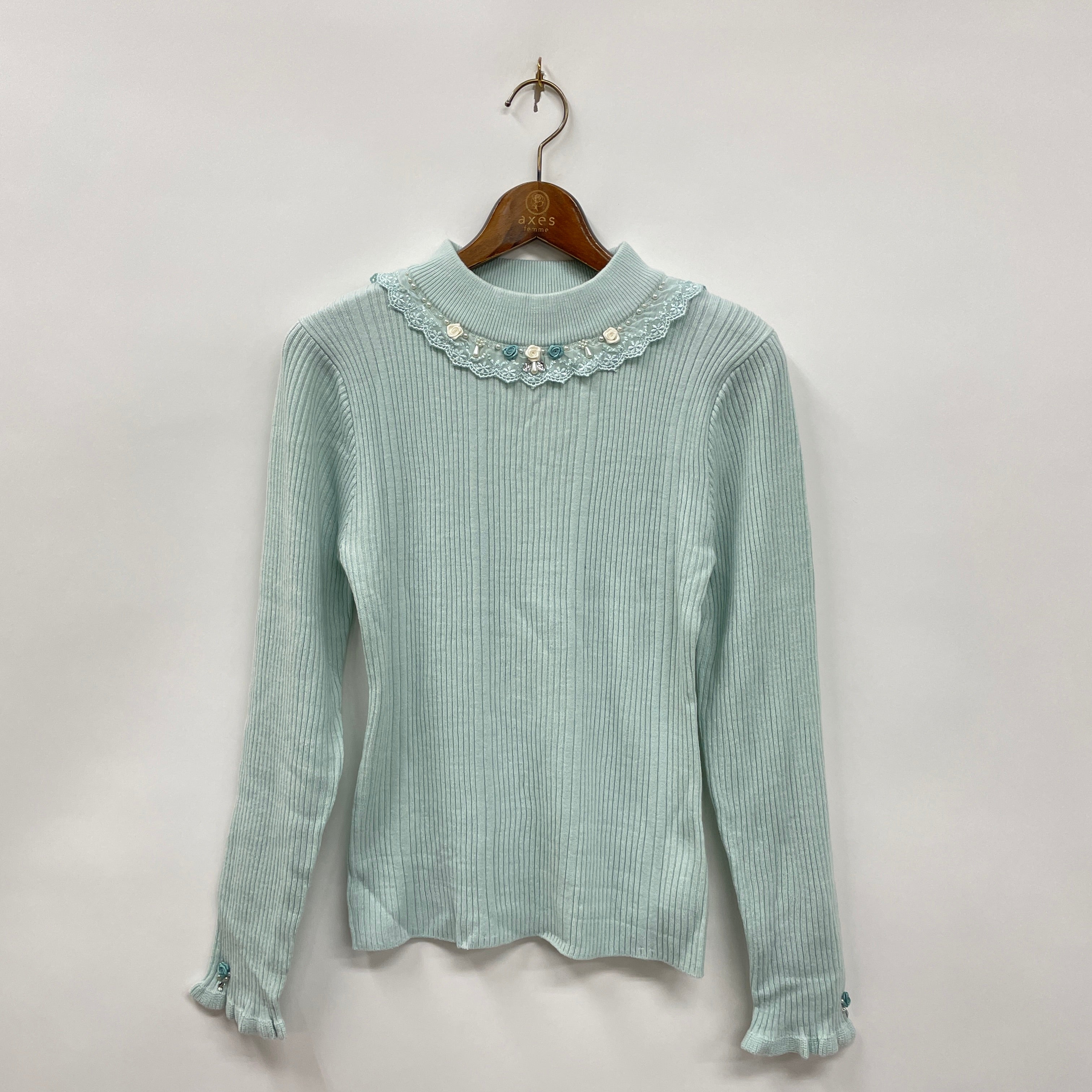 axes femme冬の大定番!華やかなバラボトルネックリブプルオーバー