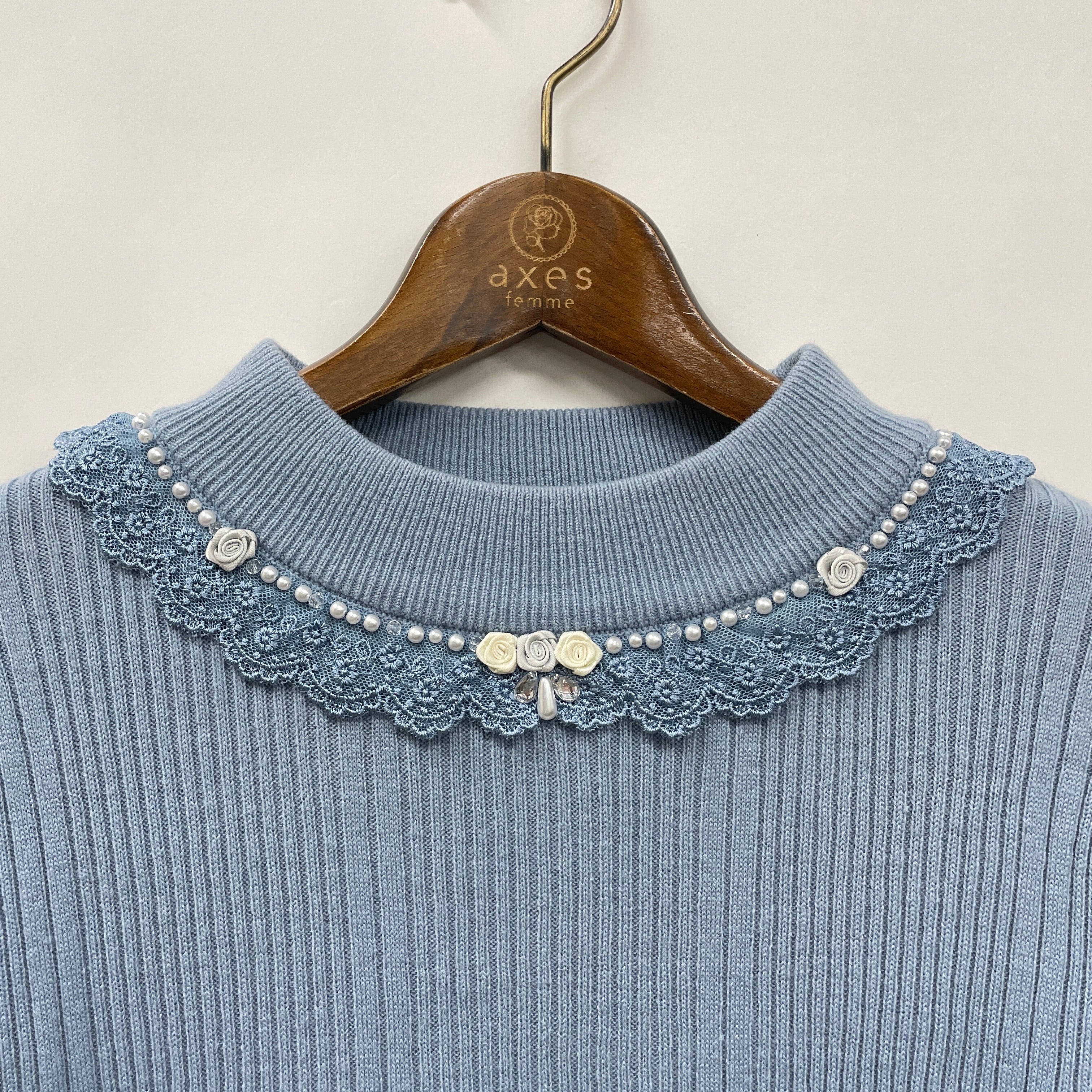 袖口にもバラとパールが施され、細部までこだわりのデザインです。