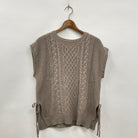トレンドのシャツ×ニットベストのアンサンブルです。サラリとして程よい張り感のある中のシャツは、胸元にビジューがアクセントについており、シンプルながらも合わせやすいアイテム。シャーリングでふわりと広がる袖口やかぶりで着られるゴム仕様でプチスタンドネックなどもポイントです。ゆったりしたシルエットのニットベストは、両サイドにさりげなくついたリボンがデザインポイント。デイリーで気軽に着こなせる癖のないベーシックなデザインです。ふわりとしたスカートだけでなく、パンツスタイルで合わせるスタイリングもおすすめです。