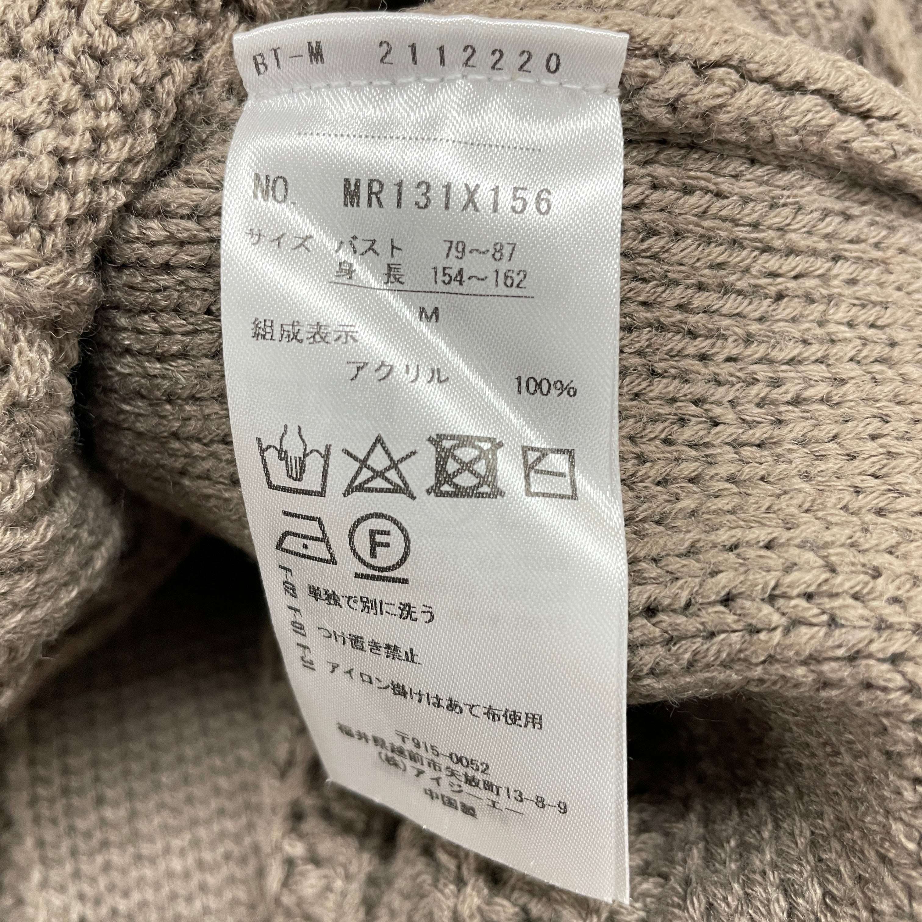 | サイズ | 着丈 | バスト | 肩幅 | 袖丈 | 袖口 |