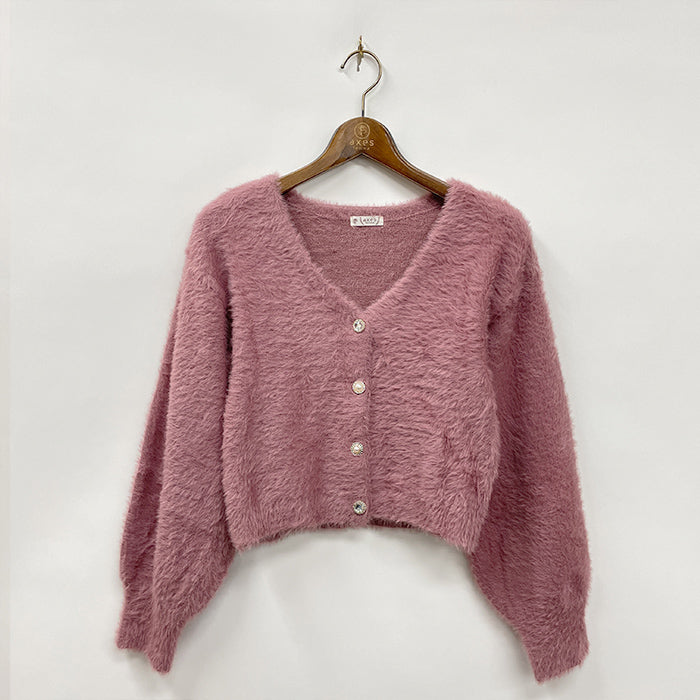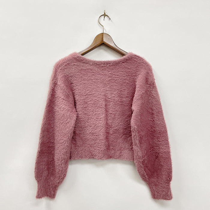 今年トレンドのふわふわフェザーニットのカーディガンです。