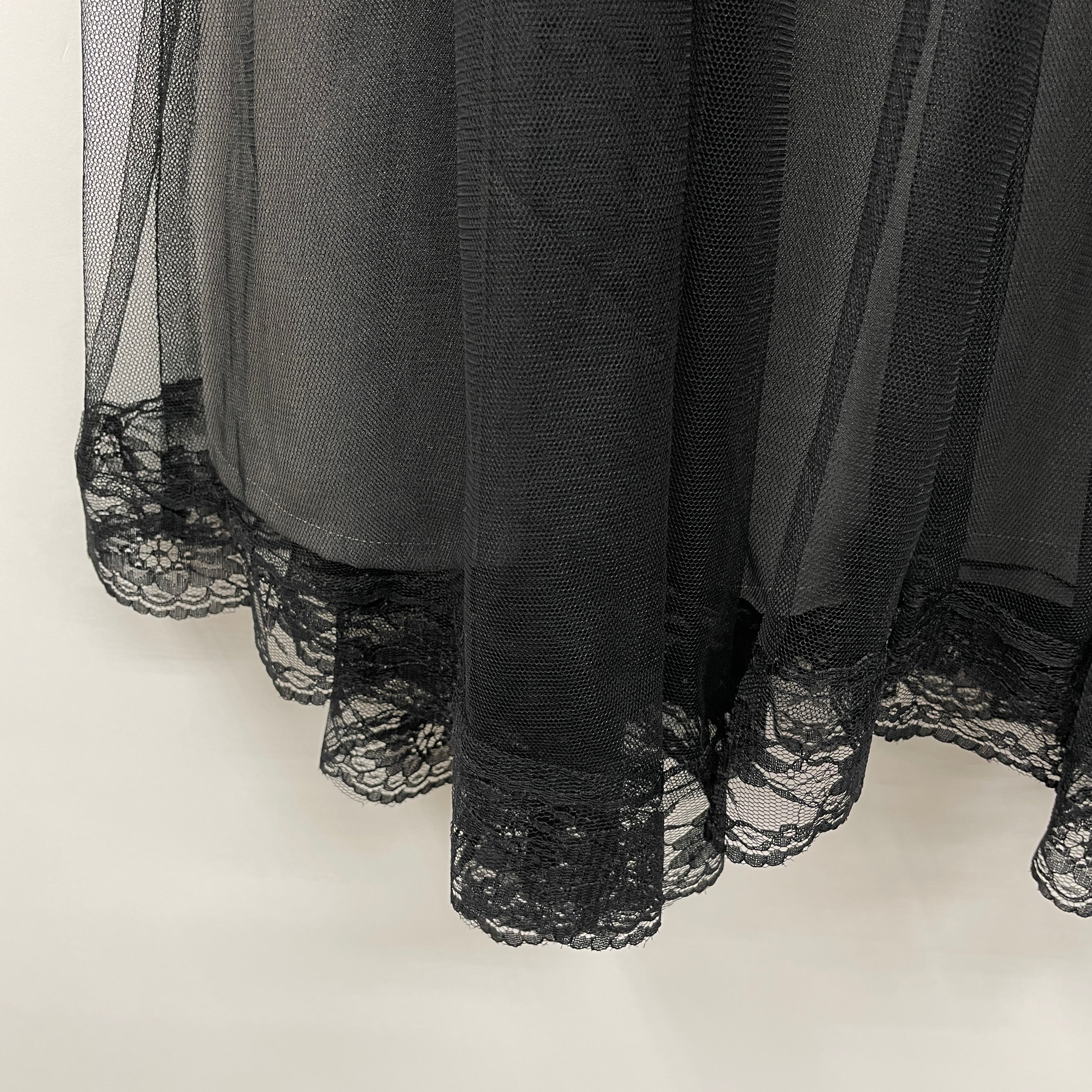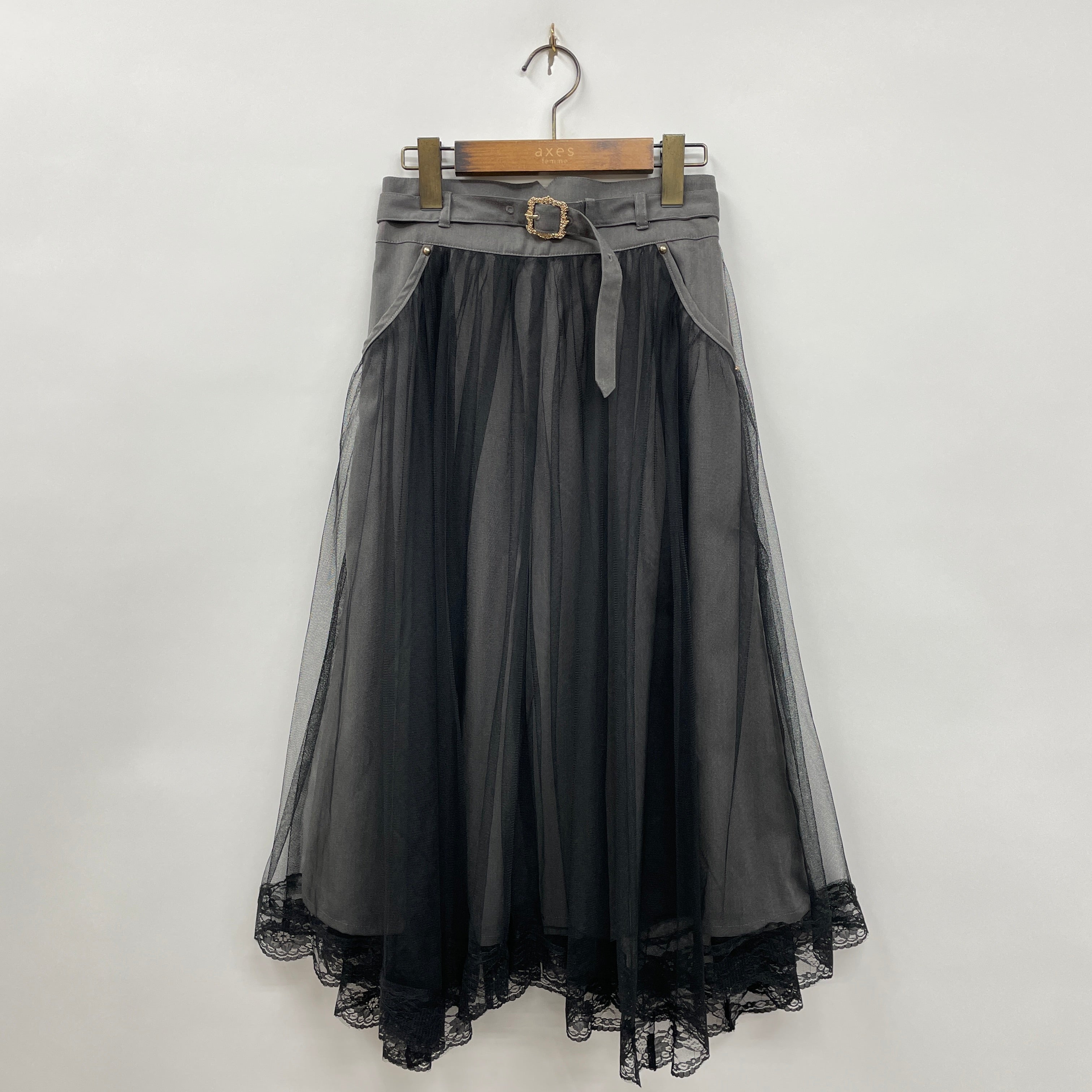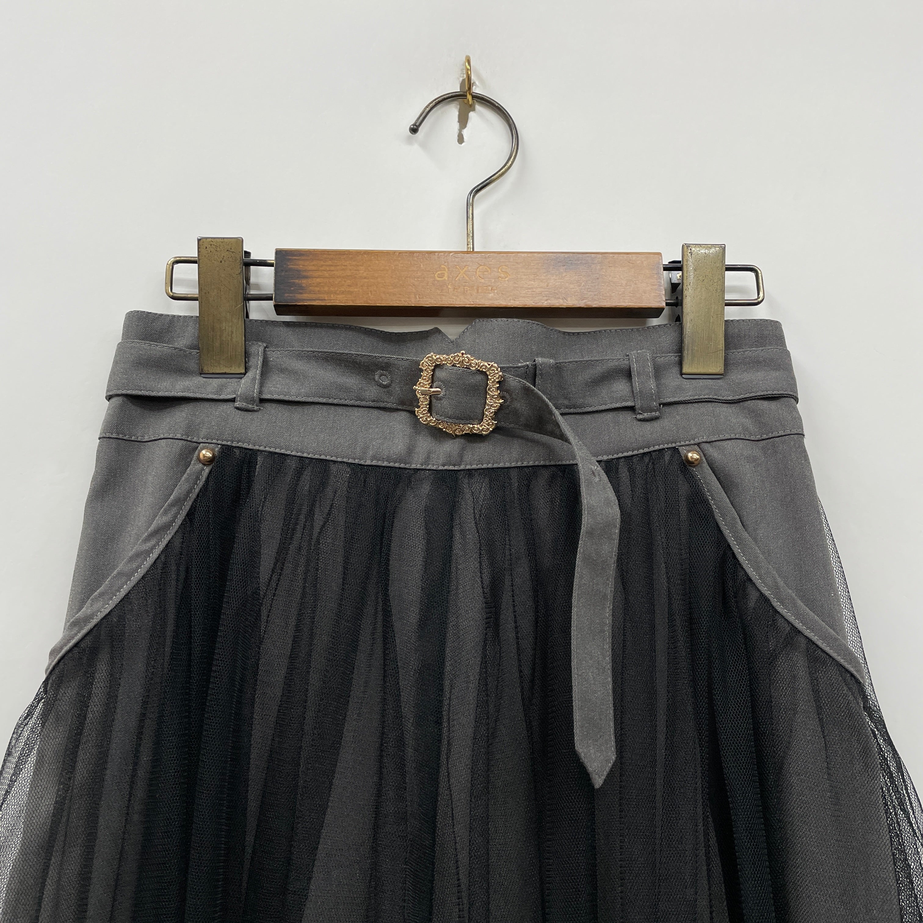 ハリのある生地にソフトチュールを重ねた、カジュアルなミディ丈のスカートです。