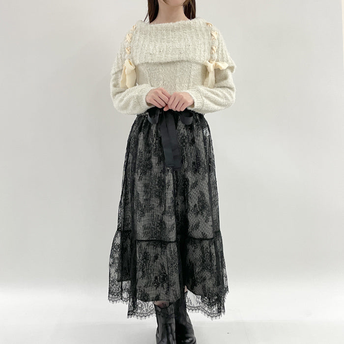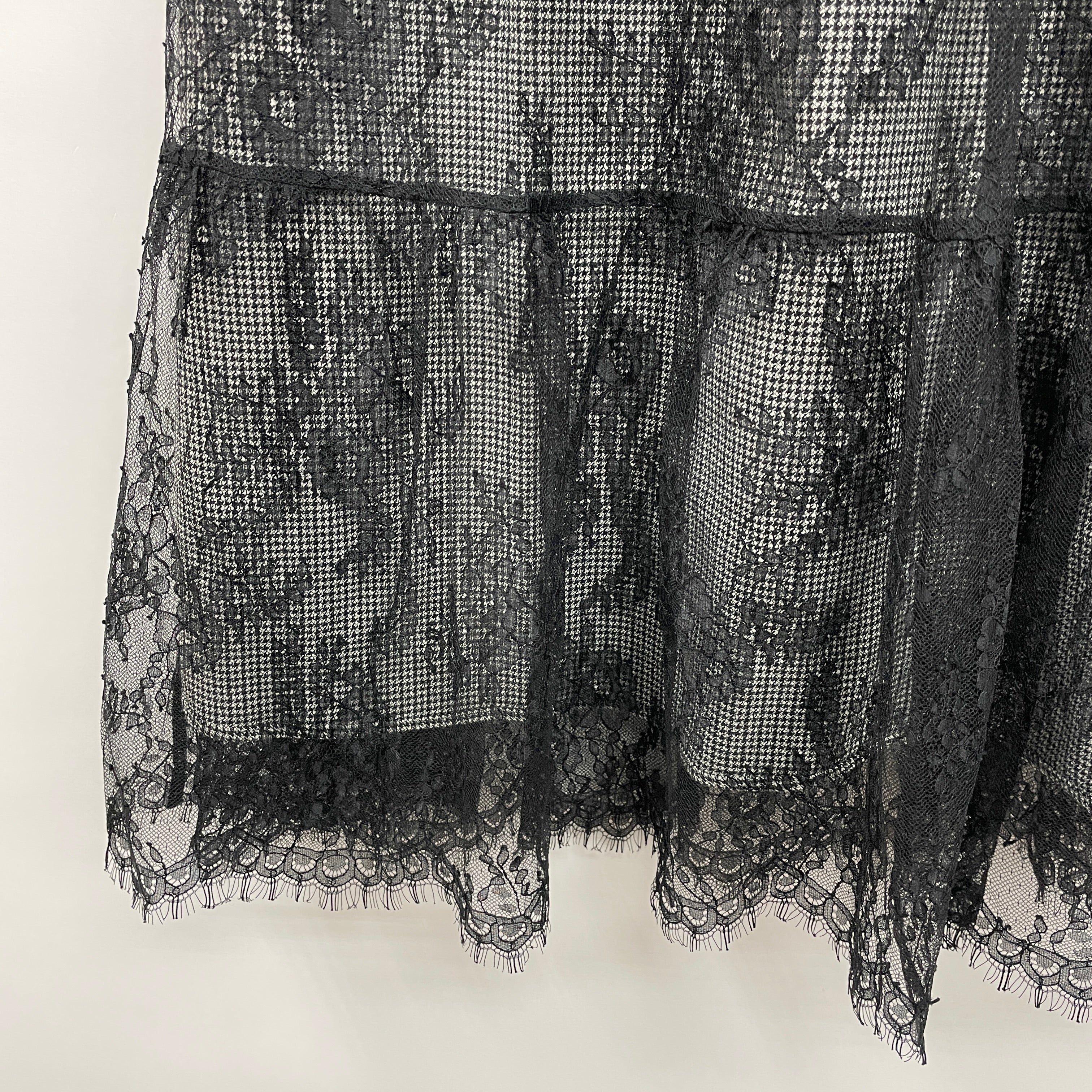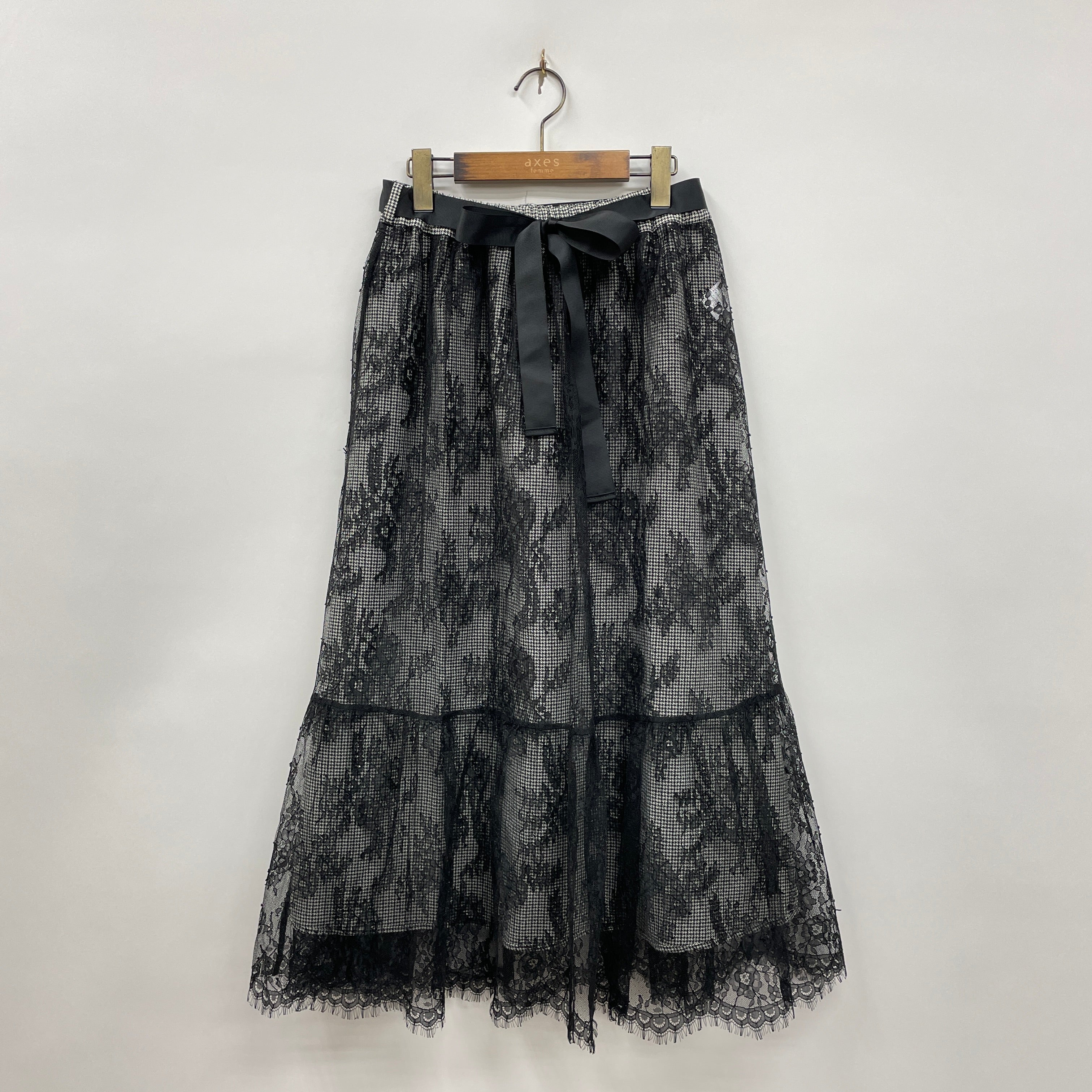 千鳥格子の柄が映えるシンプルなデザインと、総レースの華やかなデザインの両方が楽しめる、リバーシブルのロングスカートです。ニットを合わせてカジュアルに、ブラウスを合わせてフェミニンな着こなしにも。ウエストが総ゴムで履きやすいのも嬉しいポイントです。
