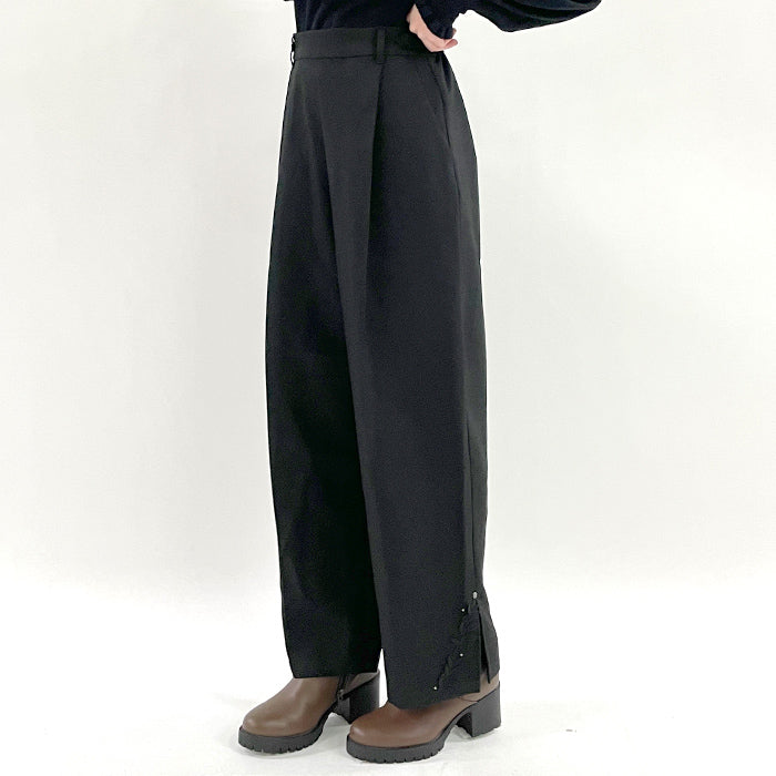 レースとラインストーンの裾デザインがポイントのストレートパンツです。