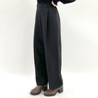 すっきりしたシルエットに見えるよう、センタープレスが入ったデザイン。