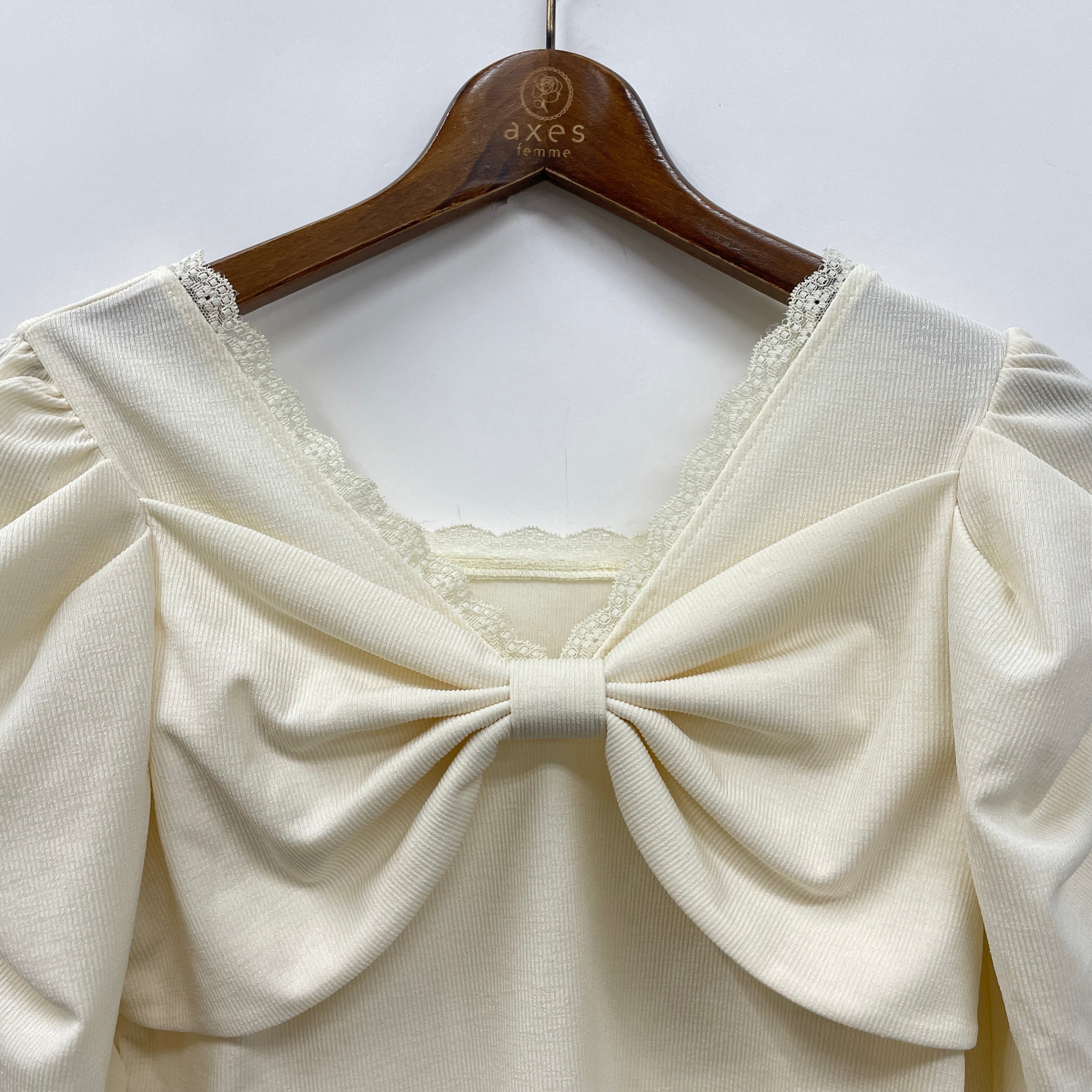 リボンディテールがトレンド感のあるフェミニンなデザインです。