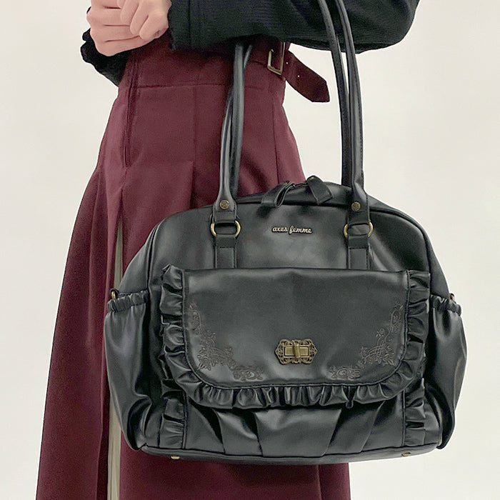 華やかなフリルデザインとモチーフ刺繍がポイントのA4トートバッグです。