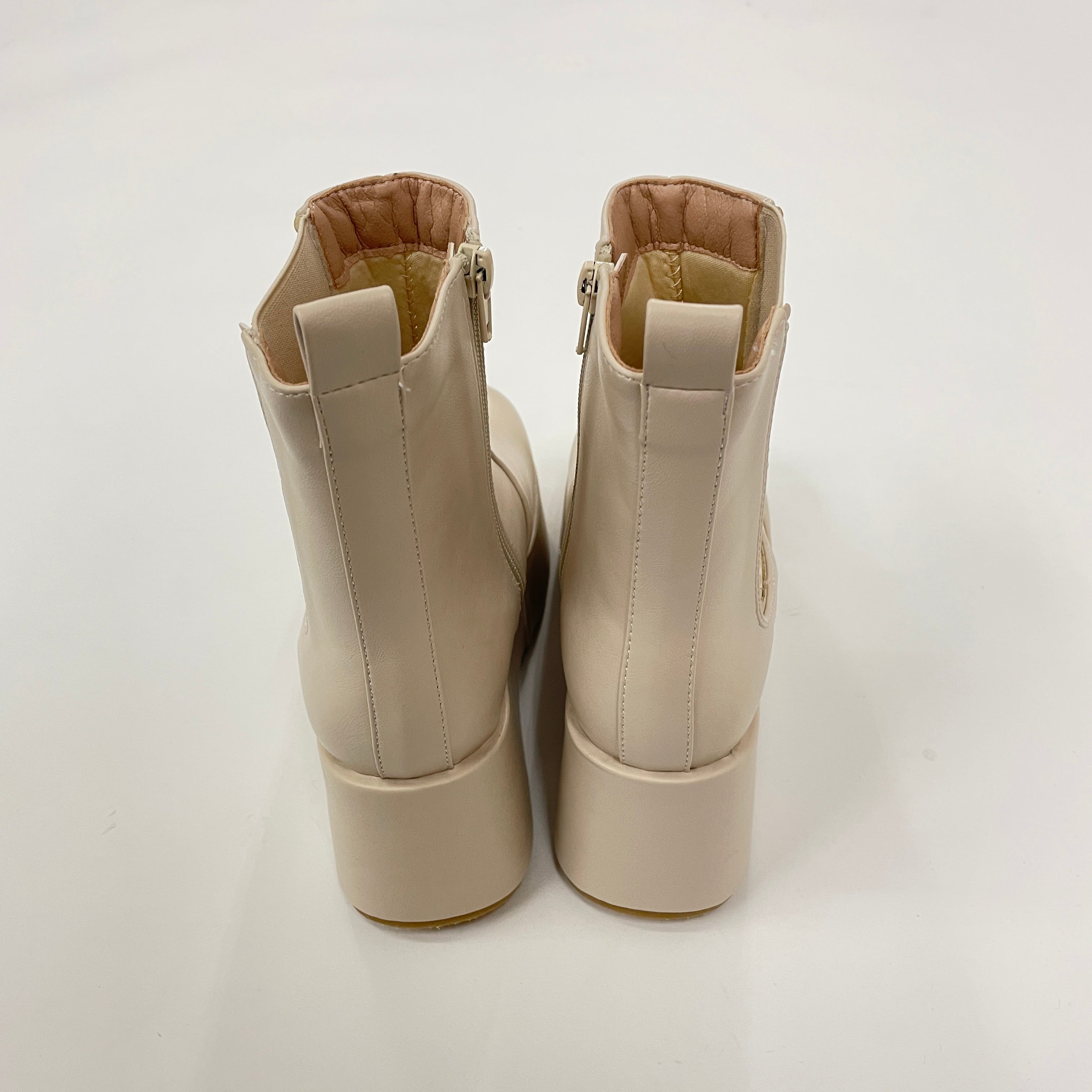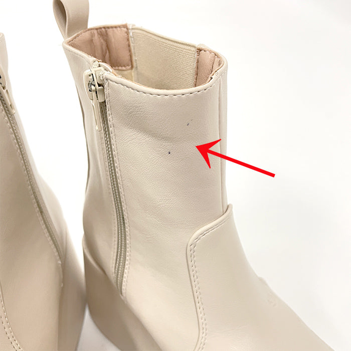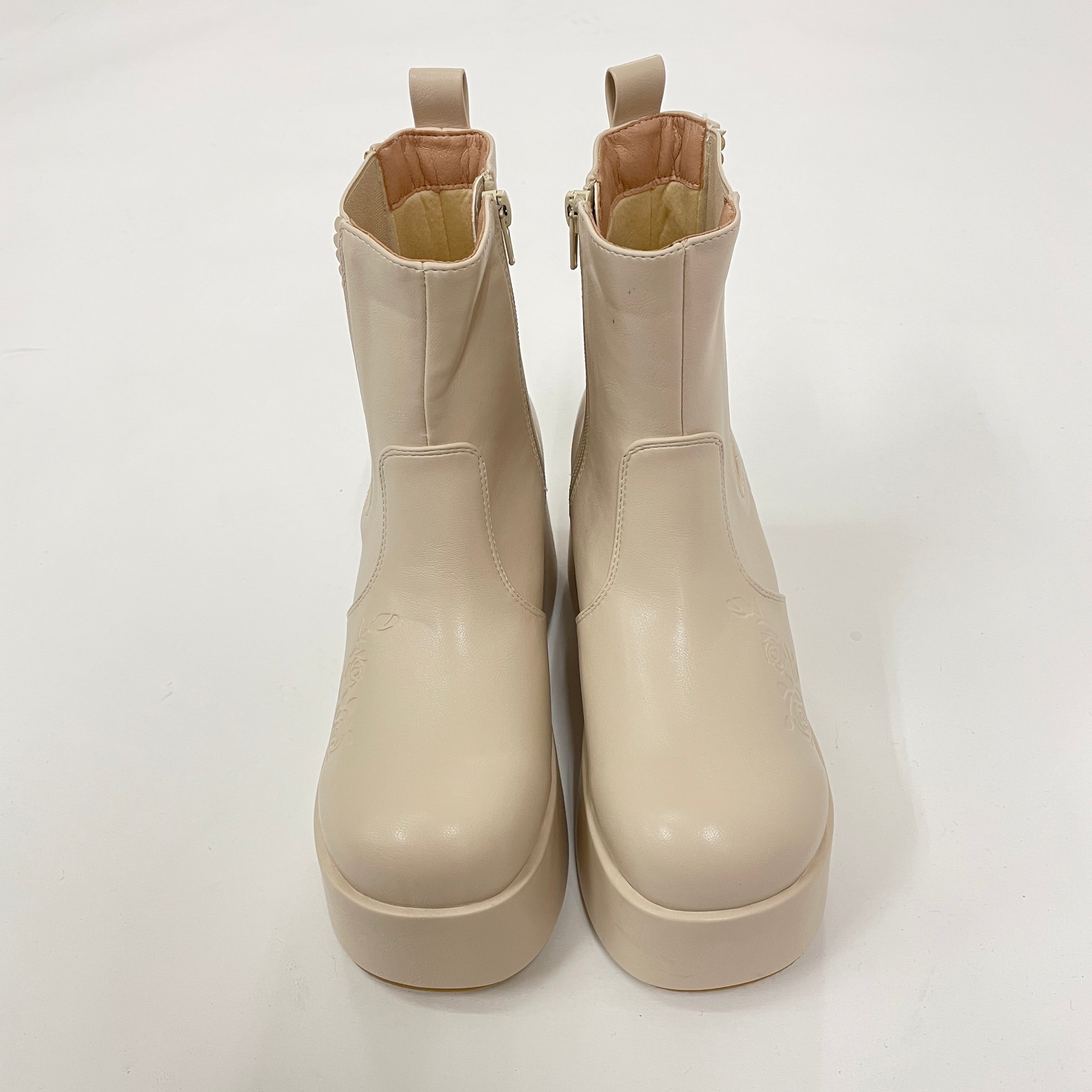 サイドにほどこした薔薇エンボスデザインがポイントの厚底ブーツです。