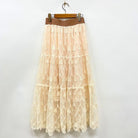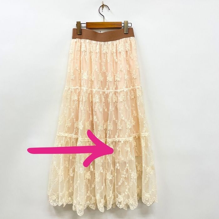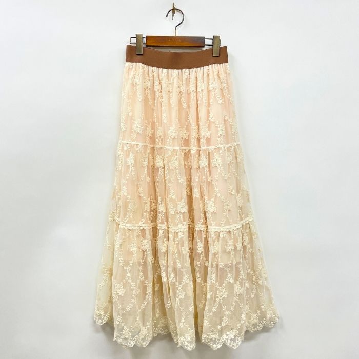 華やかな刺繍レース生地を使用したティアードスカートはボトムとしてはもちろん、ロングワンピの下から覗かせてペチ使いにするのもおすすめです。