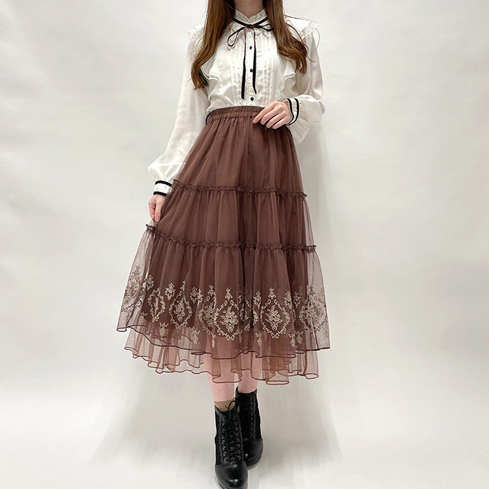 繊細なローズ刺繍を裾にあしらったスカートです。