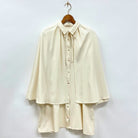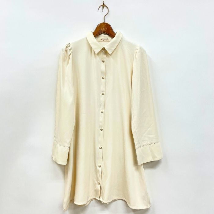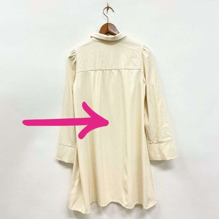 外すとシンプルなシャツワンピースです。ウエストの付属リボンも取り外しが可能です。