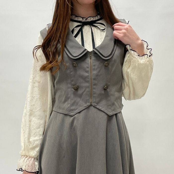 レトロクラシカルなディープネックのベストです。
