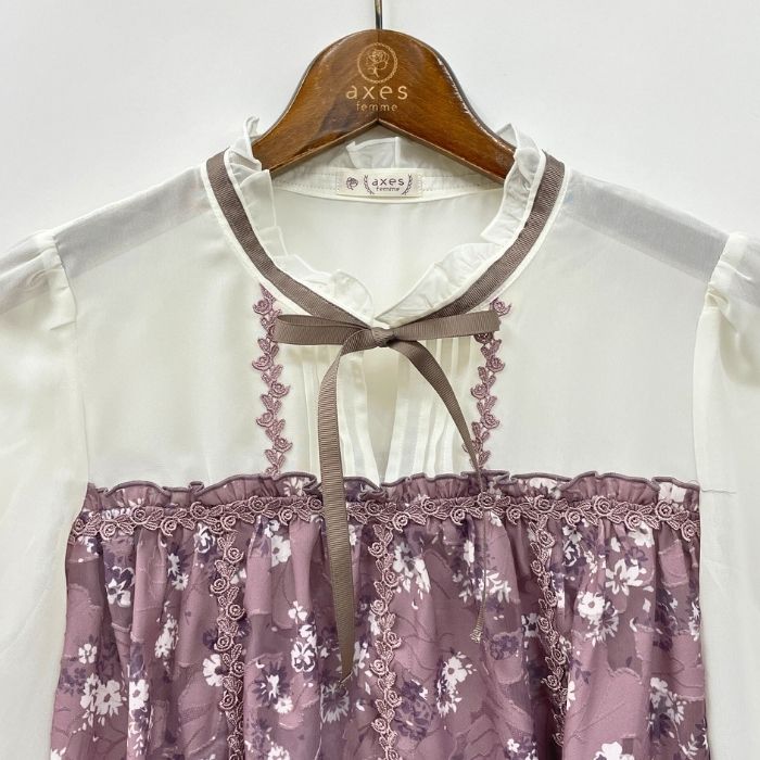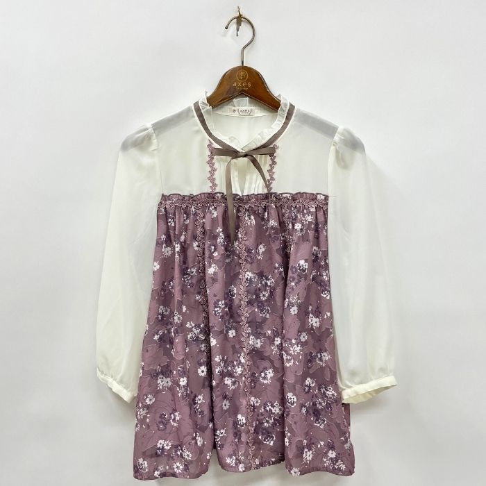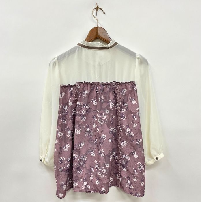 単色花柄ブラウス