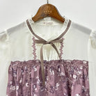 透け感のある花柄ジャカード素材がエレガントなブラウス。ラベンダーは上から花モチーフのプリントをのせ絶妙なニュアンスカラーに♪、黒はクラシカルな雰囲気を楽しんでいただけます。肩部分の切り替えはシフォン素材でうっすらとシアー感が◎。七分袖デザインなのでロングシーズン着用いただけます。連動した素材のスカートと合わせたセットアップ風の着こなしがおすすめ!