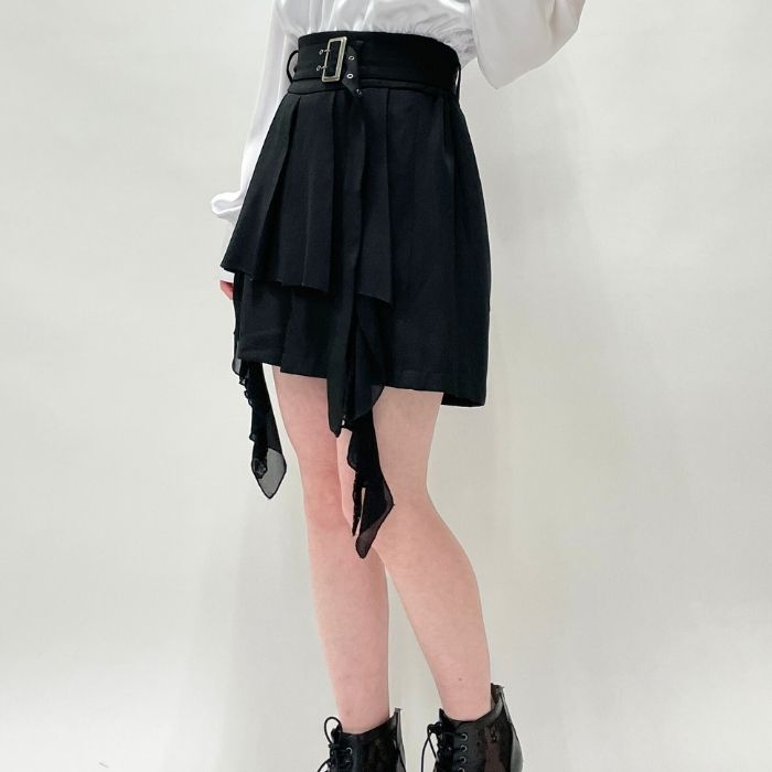 グランジ感を演出するフラシデザインがポイントのショートパンツ。