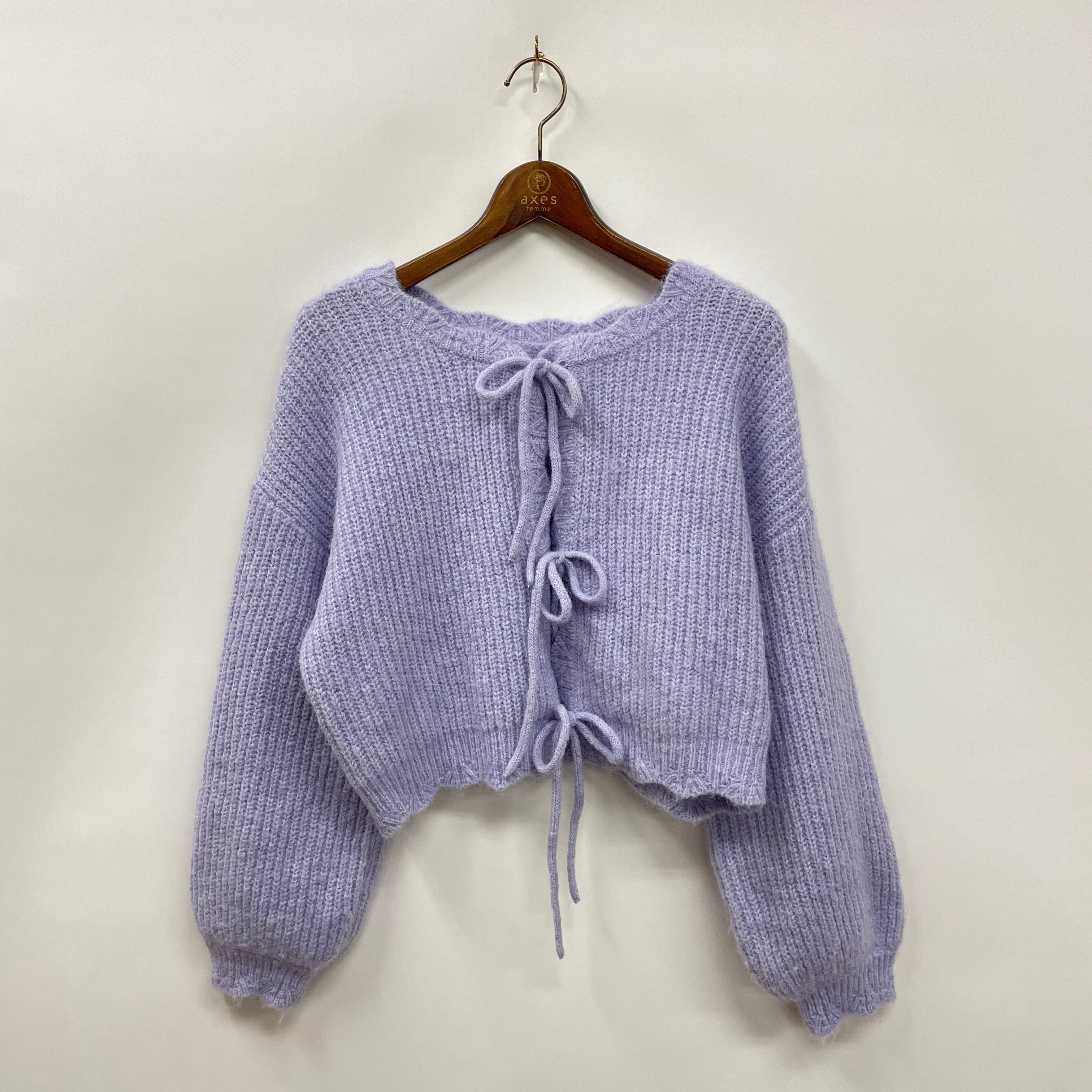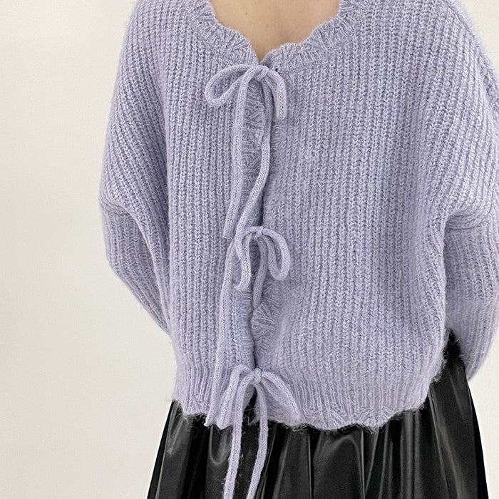 バックリボンケーブルニット