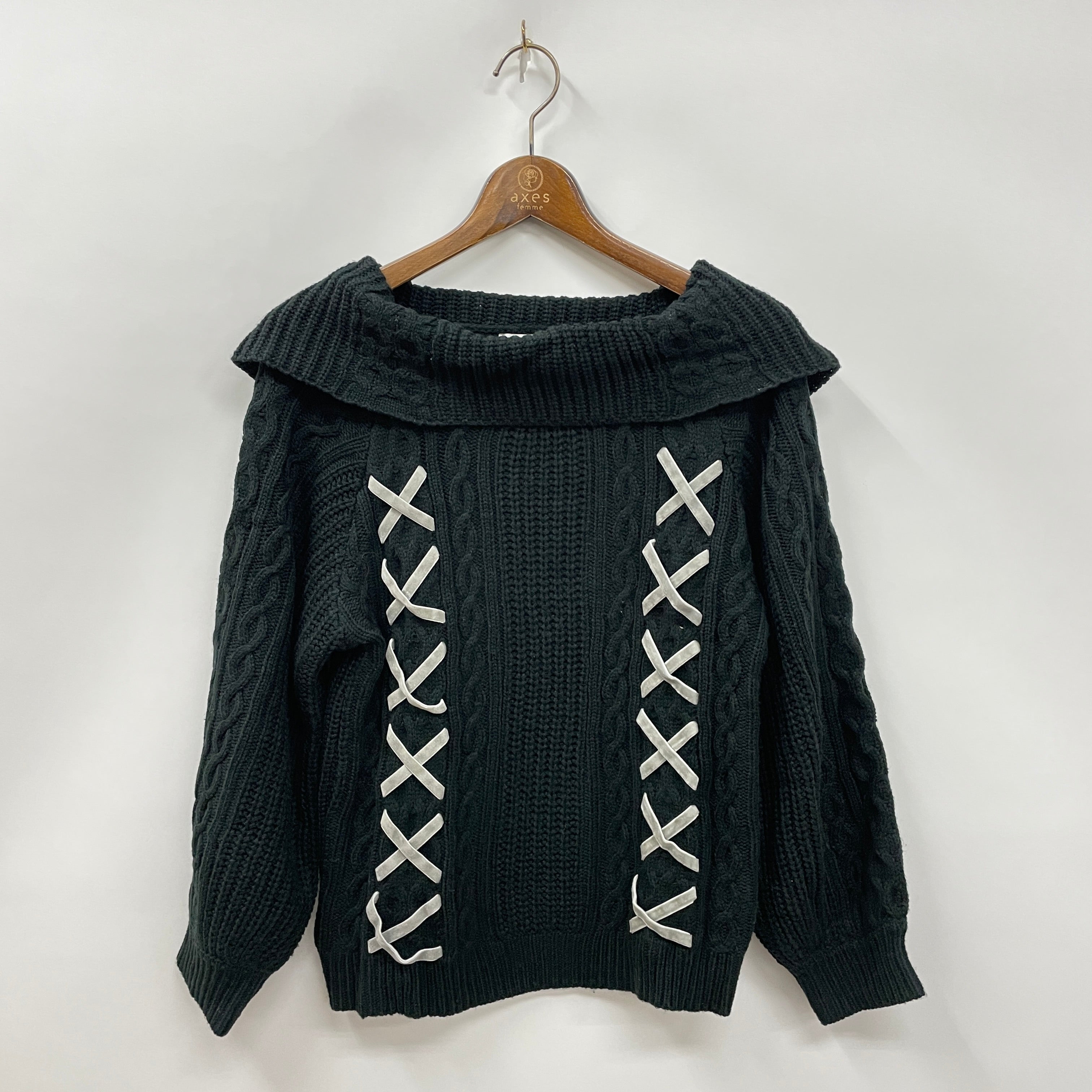 編み上げオフタートルニット