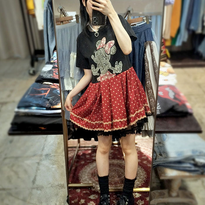 古着のミニーちゃんTシャツにaxesfemmeのドットスカートを合体!