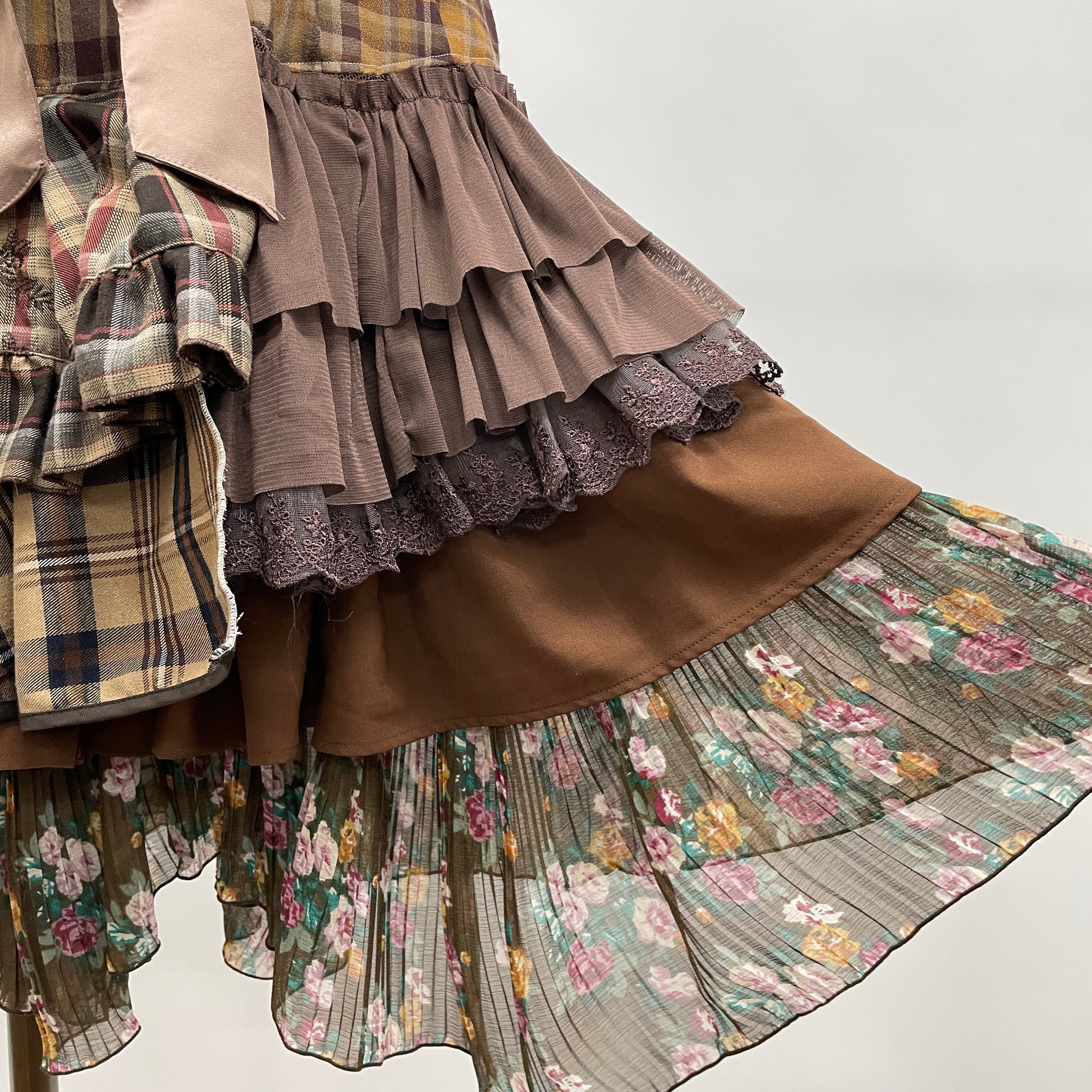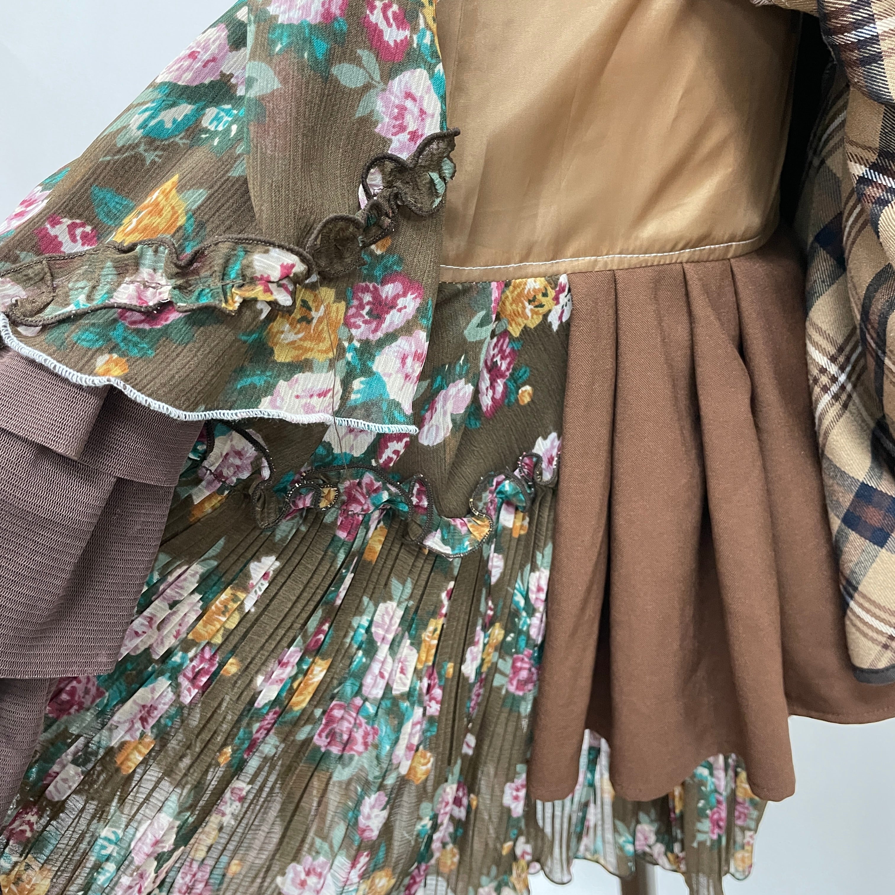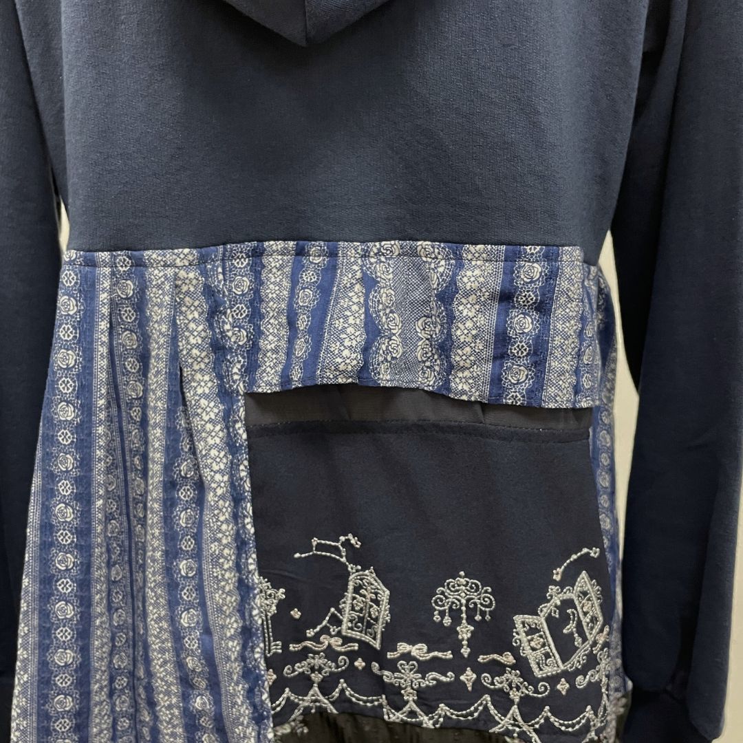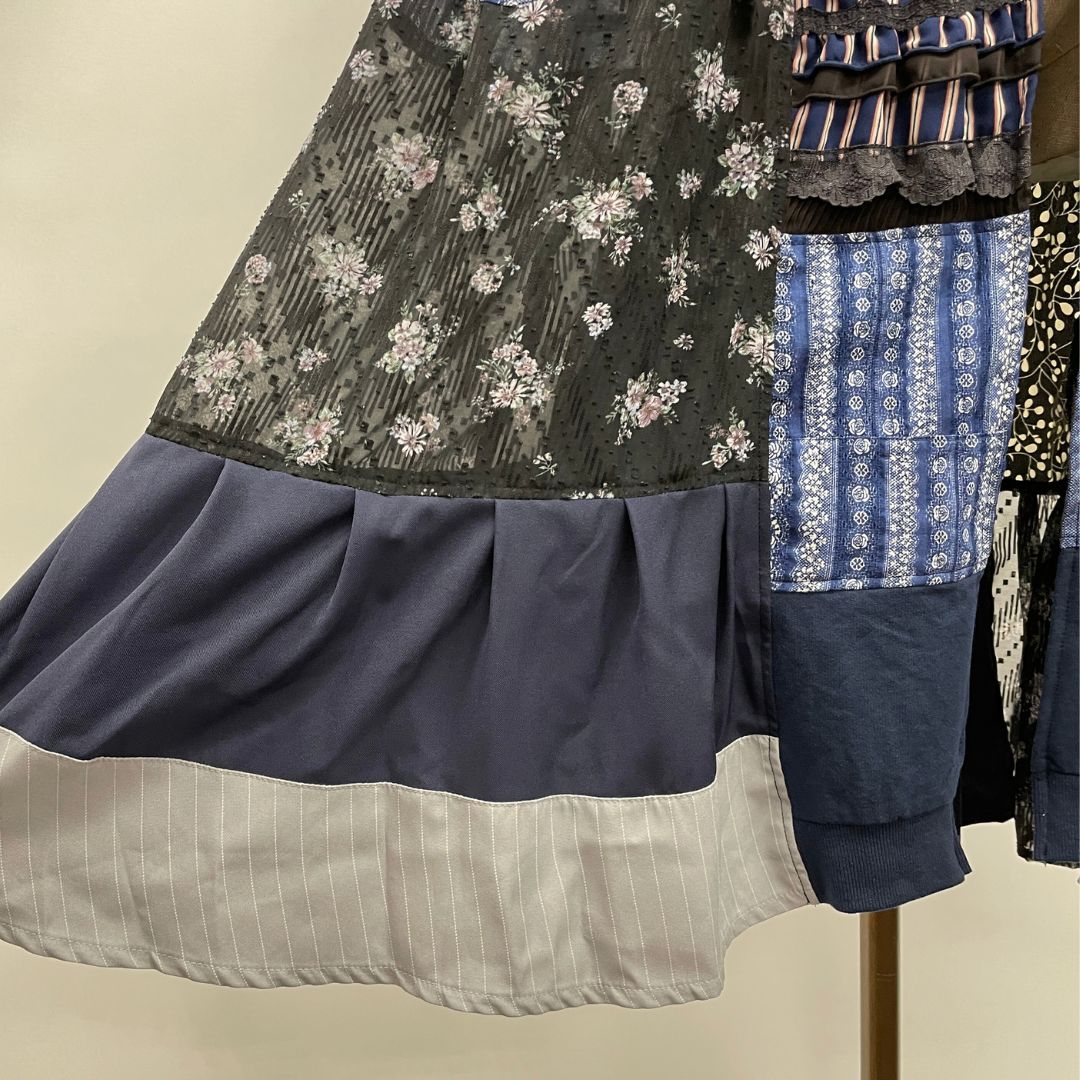 お客様から回収したaxes femmeの古着を何枚も使用し、全てクリエーターさんの手作業で裁断・縫製、全く新しい価値観のお洋服として再構築しています。