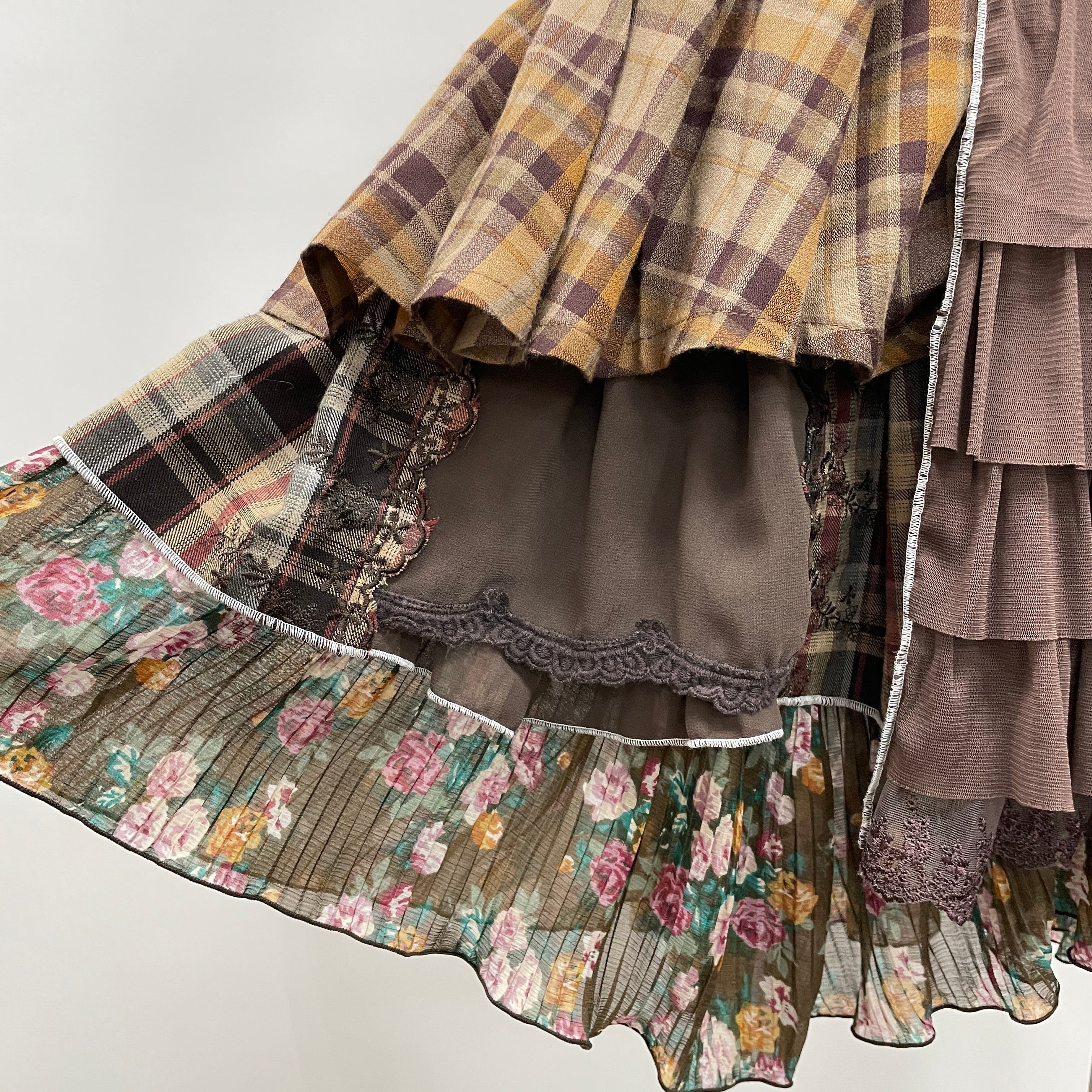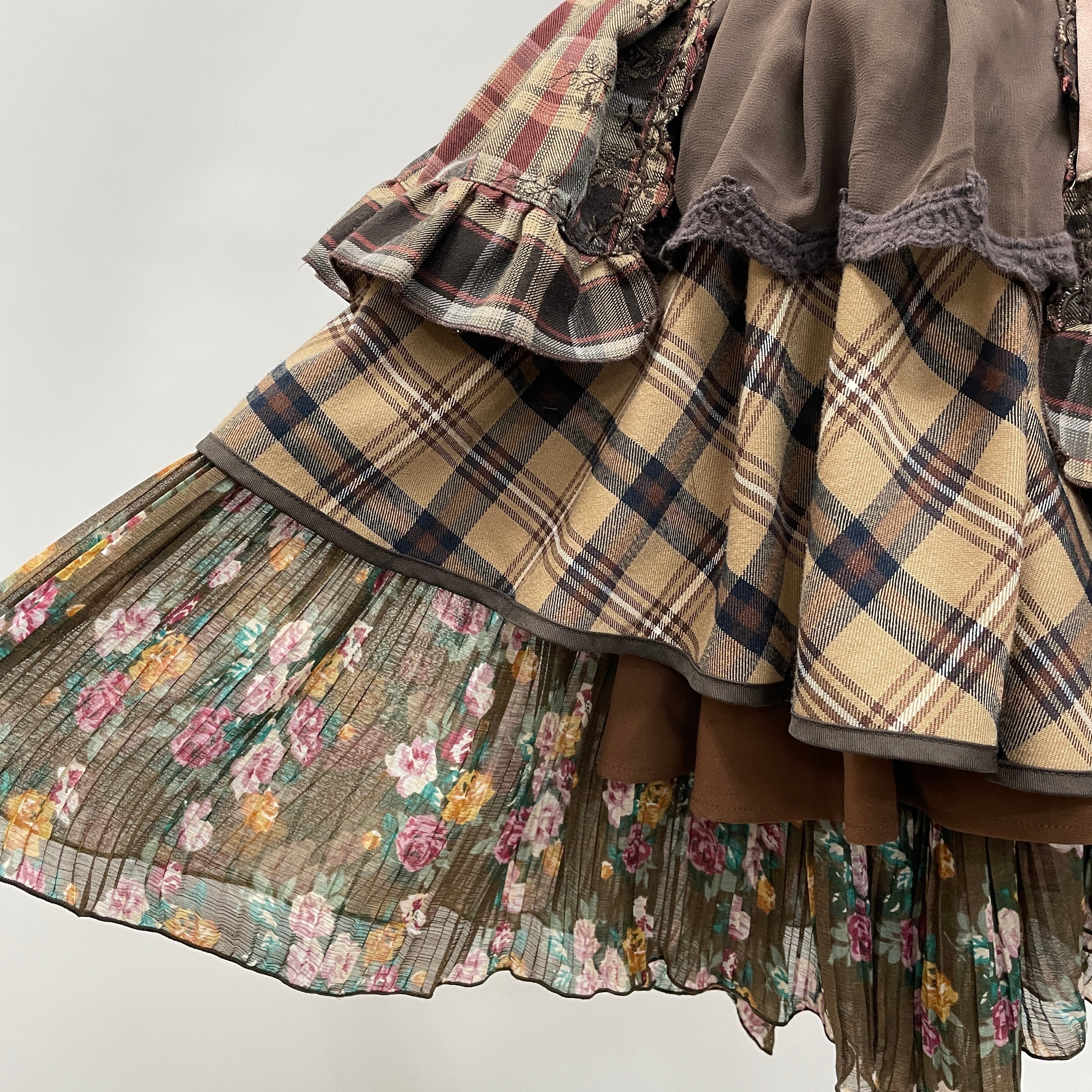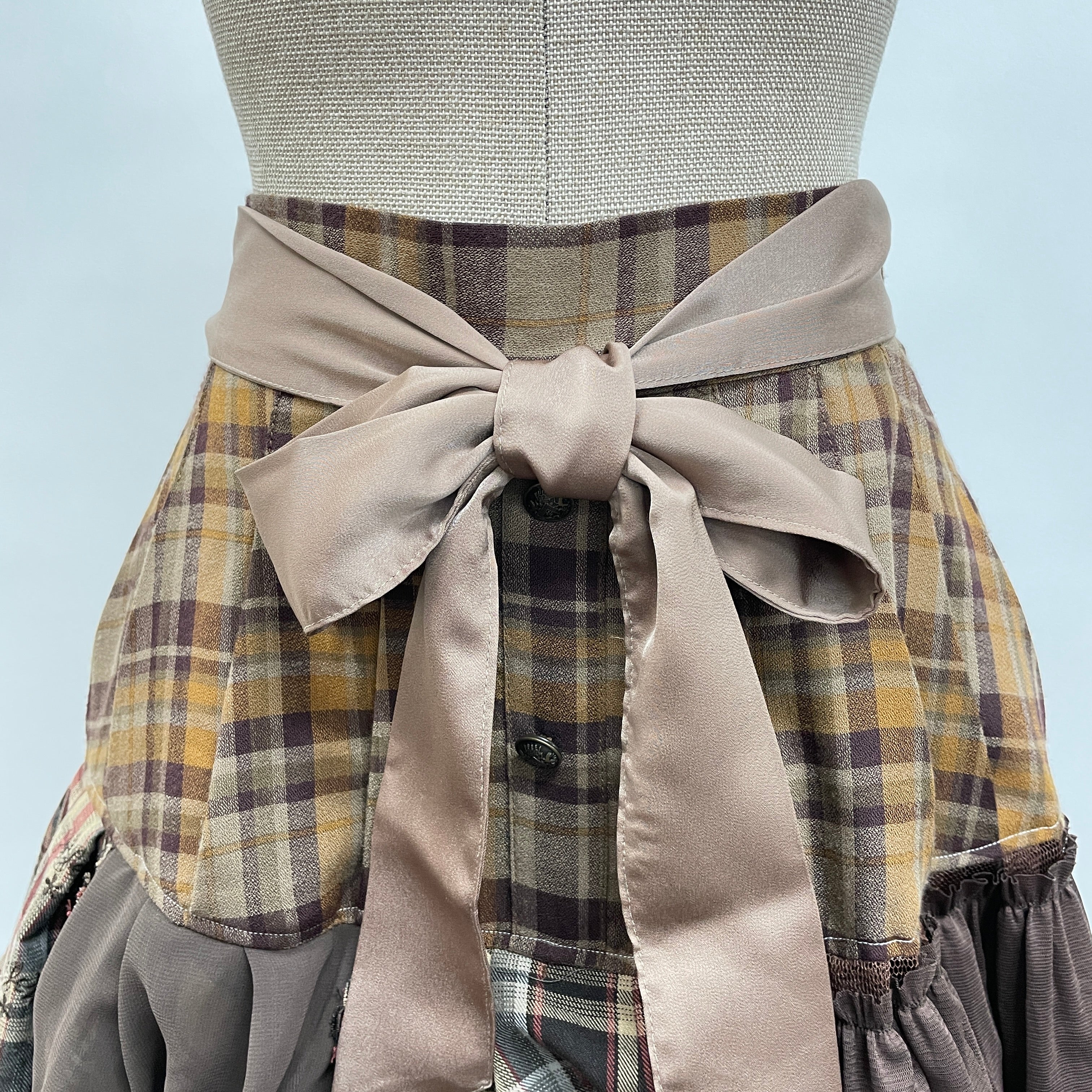 お客様から回収したaxes femmeの古着を何枚も使用し、全てクリエーターさんの手作業で裁断・縫製、全く新しい価値観のお洋服として再構築しています。