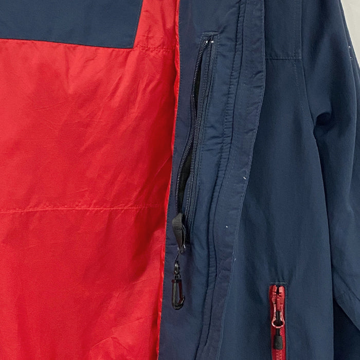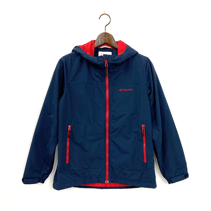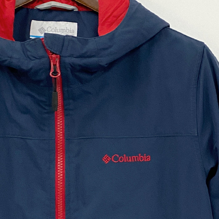 コロンビアのラビリンスキャニオンジャケットです。ネイビーをベースにジッパーや内側に鮮やかな赤を配置した、ビビッドな配色が魅力的です。