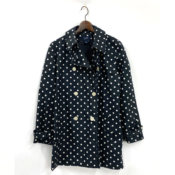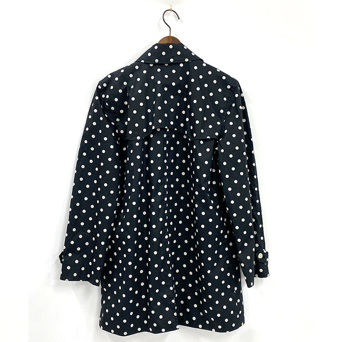 フェミニンさとモードなクールさを兼ね備えた、水玉模様が珍しく魅力的なデザインのハーフコートです。