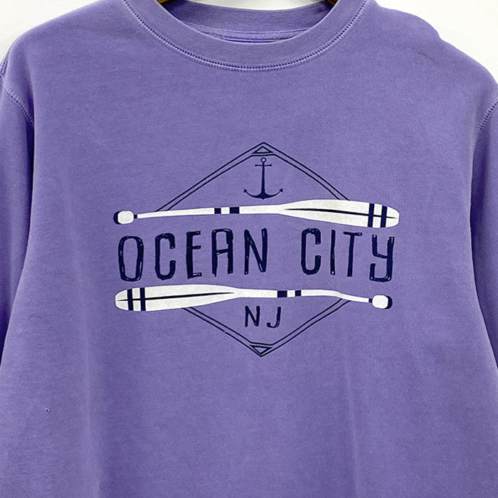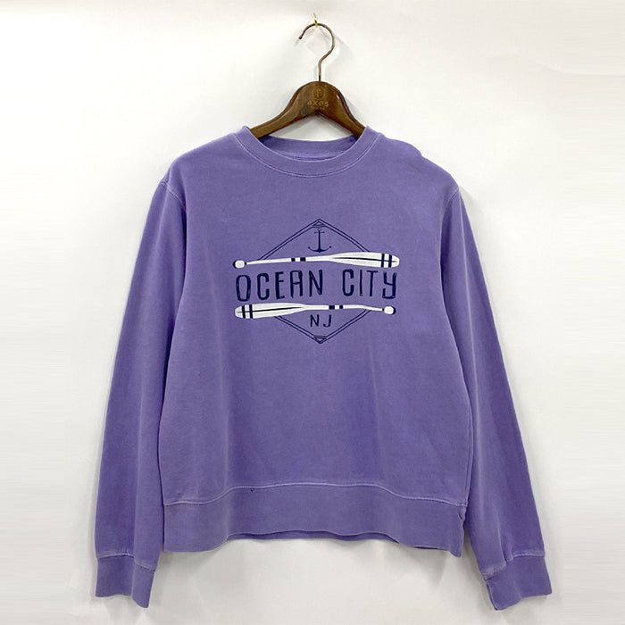 オールや碇など「海の街」をイメージさせるデザインがあしらわれた、かわいらしいスウェットです。