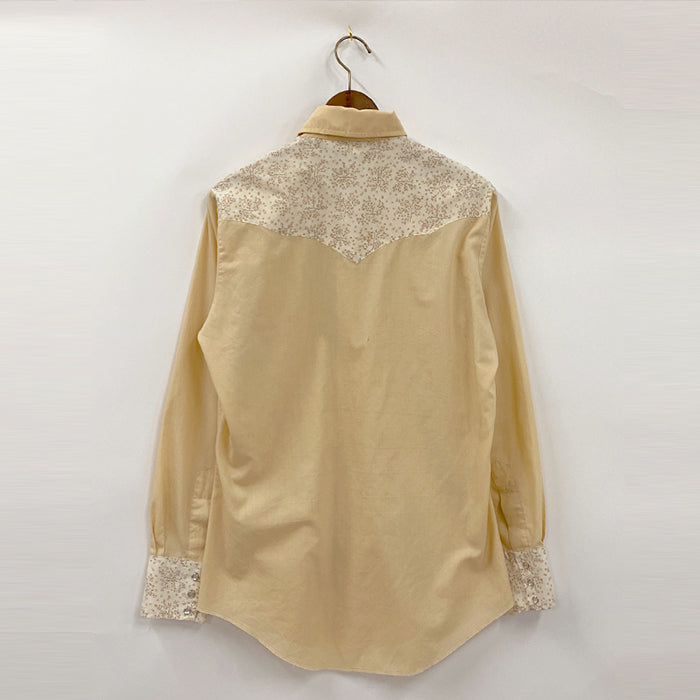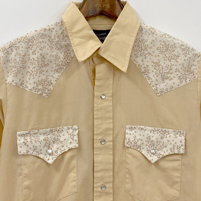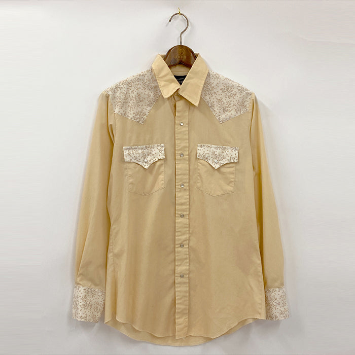淡い黄色と花柄でフェミニンにデザインした、珍しいウエスタンシャツです。