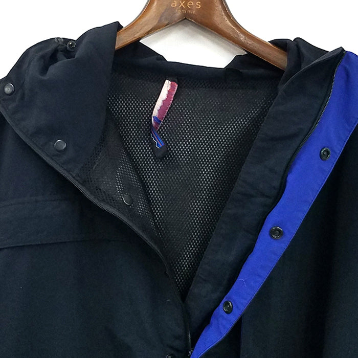 パタゴニアのマウンテンパーカーです。青の差し色が魅力的です。