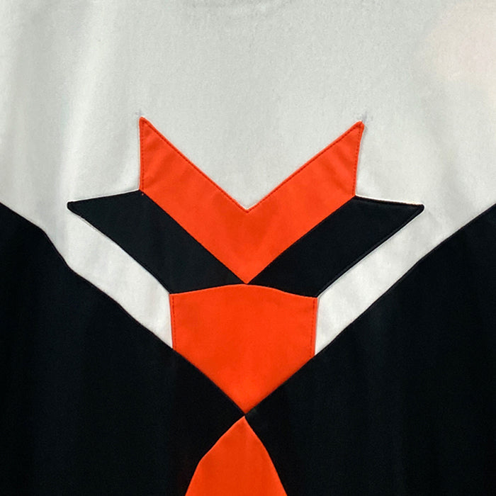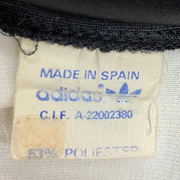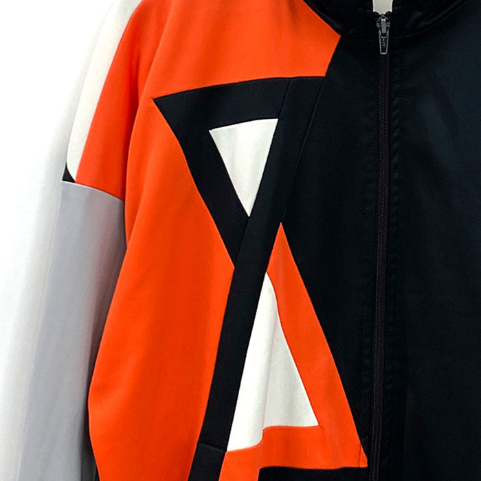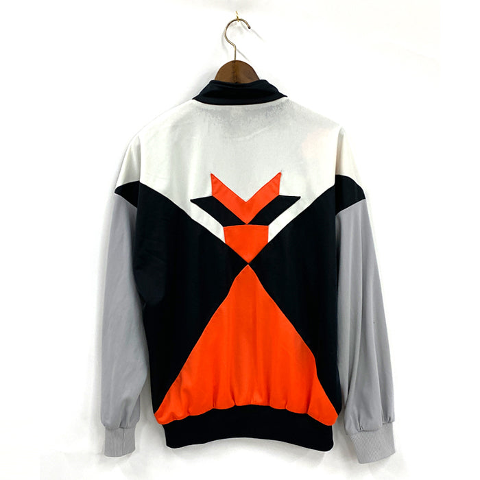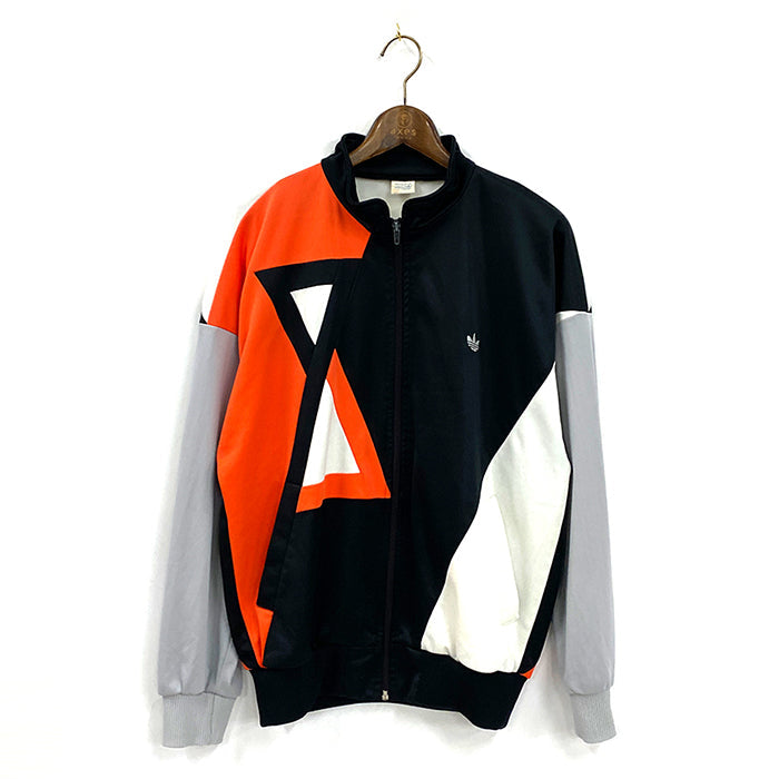 鮮やかな色彩にアシンメトリーな切替が80年代らしく魅力的なデザインの、アディダスのトラックジャケットです。