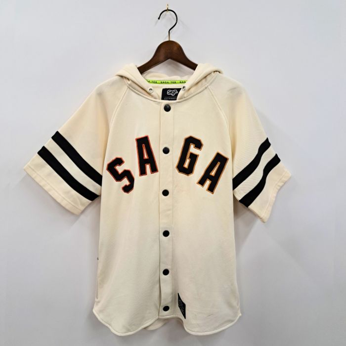 フードの付いたベースボールシャツで、カジュアルなアイテムです。