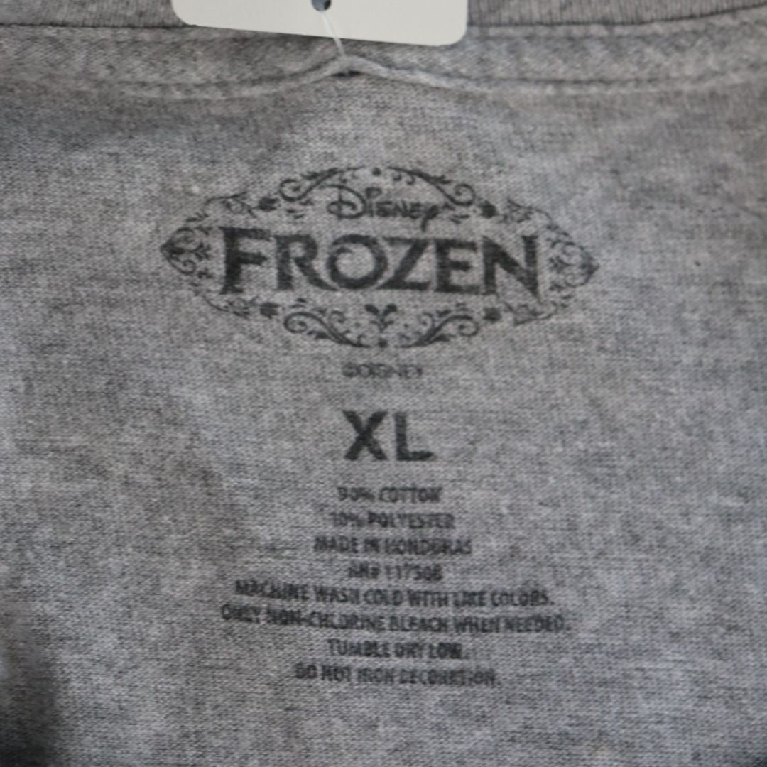 アナと雪の女王のキャラクター、オラフの絵が描かれたTシャツです。映画を思い出させるイラストです。