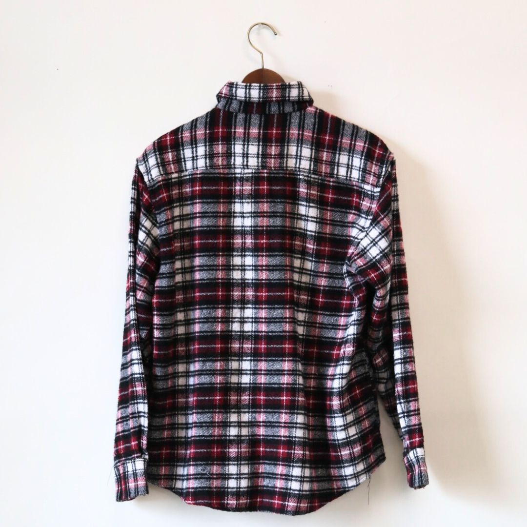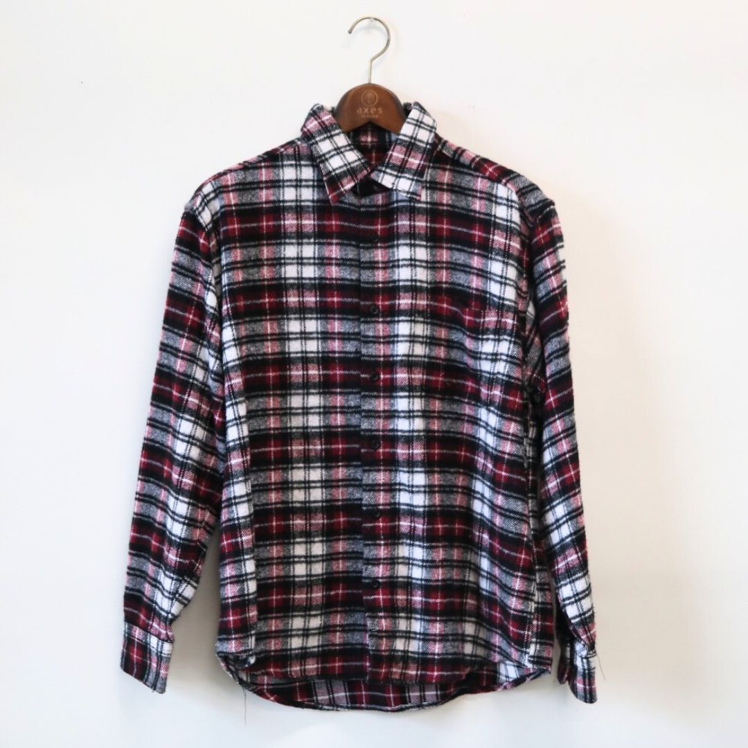 赤×黒でかっこいいシャツです。一枚でも重ね着でもかっこよく着れるアイテムです。