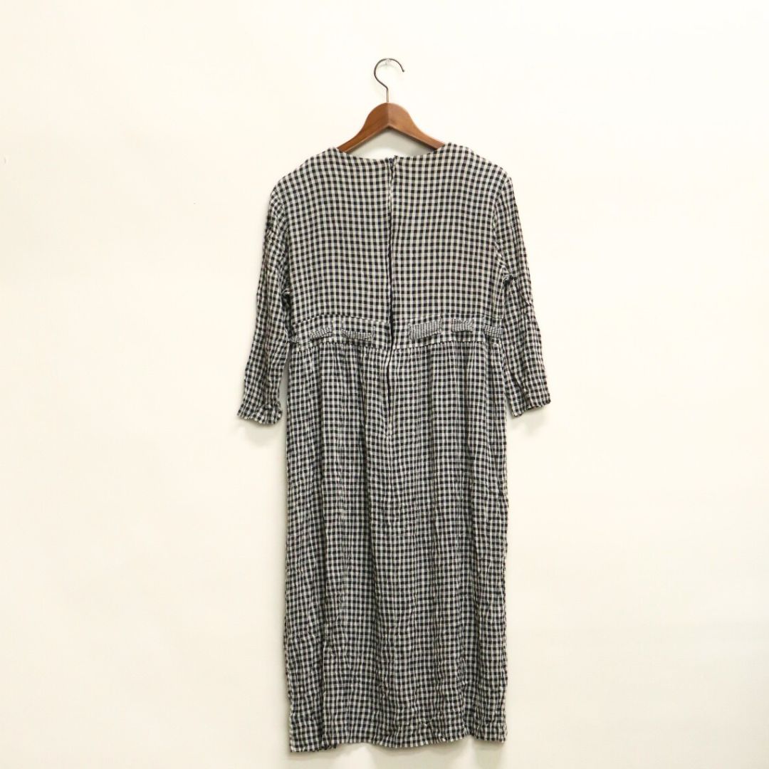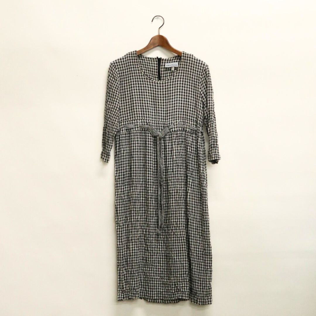 モノクロでかわいいワンピースです。薄手なので重ね着でおしゃれに着こなせるアイテムです。