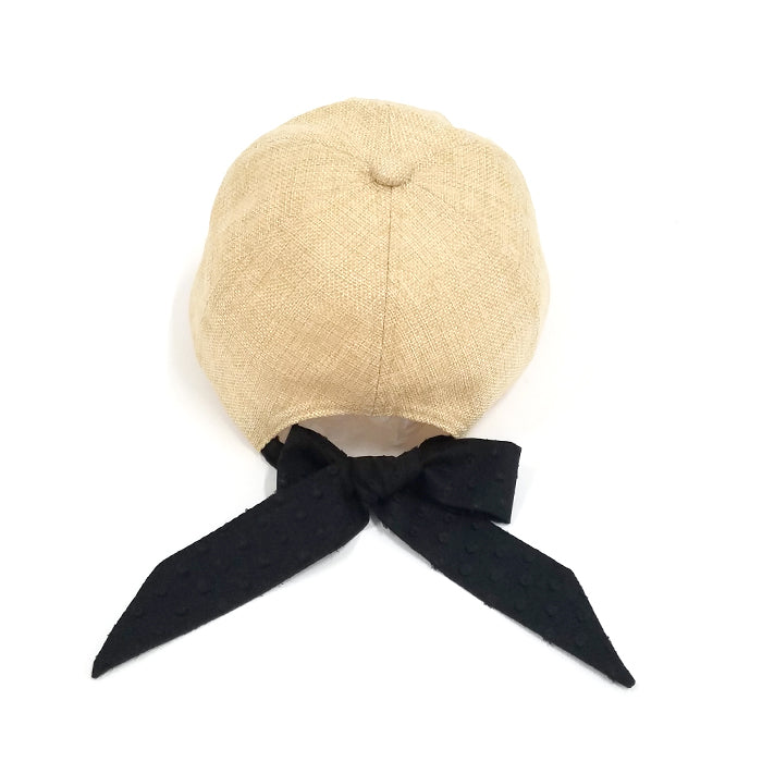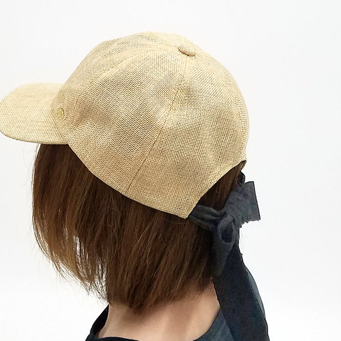 シンプルで涼しげな雑材風の素材で夏にぴったりの雑材風キャップ。後ろ中心には大きめのリボンがあしらわれた甘すぎず様々な服装に合わせることが出来ます。