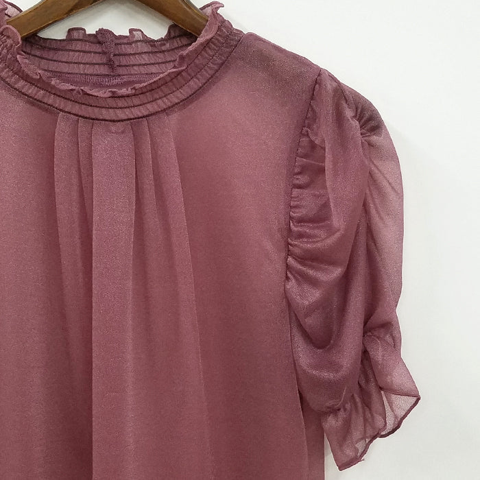 透けすぎない絶妙なシアー素材を使用したトップスです。