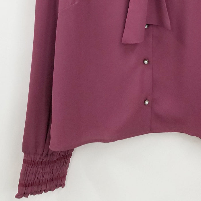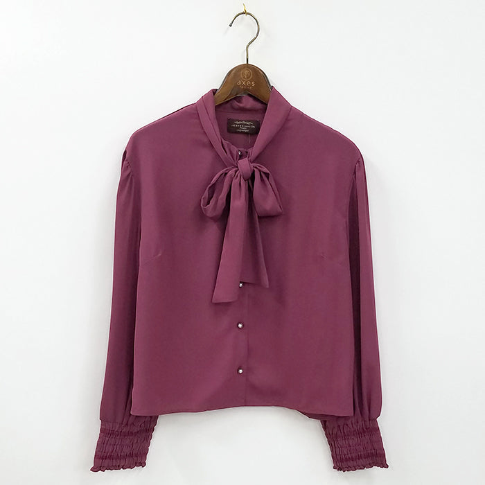 コーディネートに華やかさを与えるボウタイリボンデザインのブラウスです。