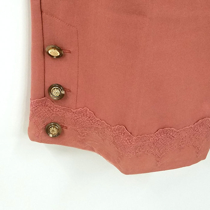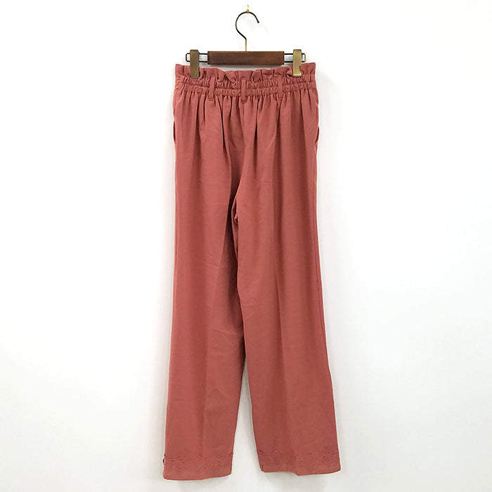 スタイリッシュなシルエットに裾のボタンとレースデザインがポイントのロングパンツです。