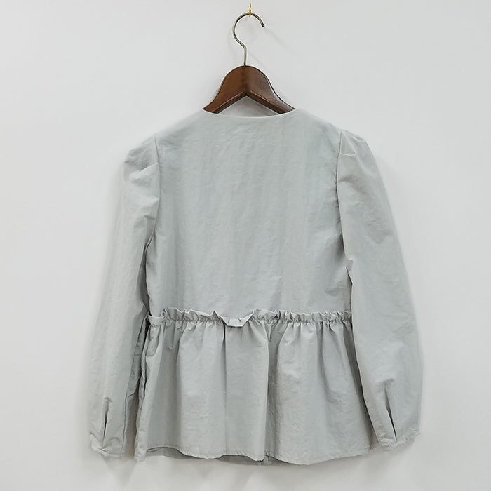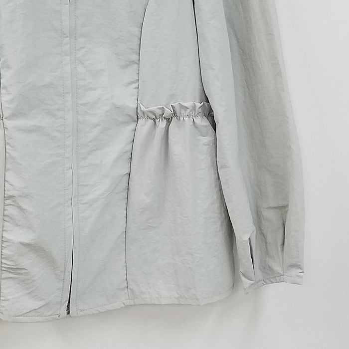 ギャザー使いでシルエットにアクセントをつけた、さりげないフェミニンさが魅力的なジップジャケットです。