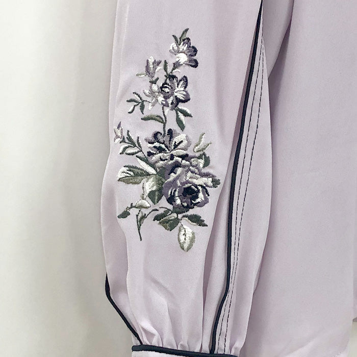 袖には華やかな刺繍が施され、フェミニンな着こなしにピッタリの1枚です。