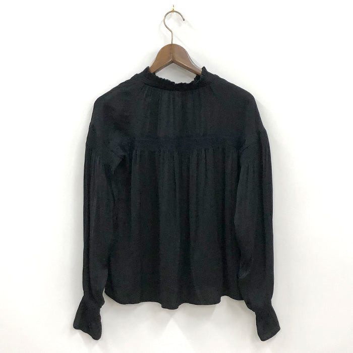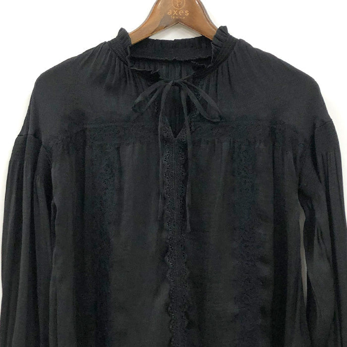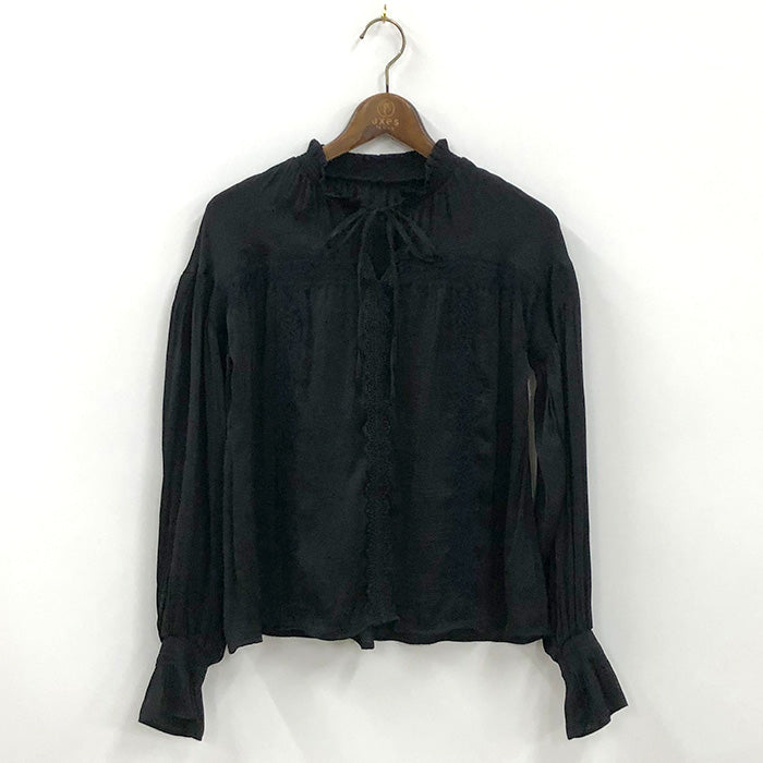 ヴィンテージサテンのレース付きブラウス。レース使いがクラシカルながらも、甘すぎない印象です。袖はボリュームスリーブなど細部までこだわりを感じるデザイン。