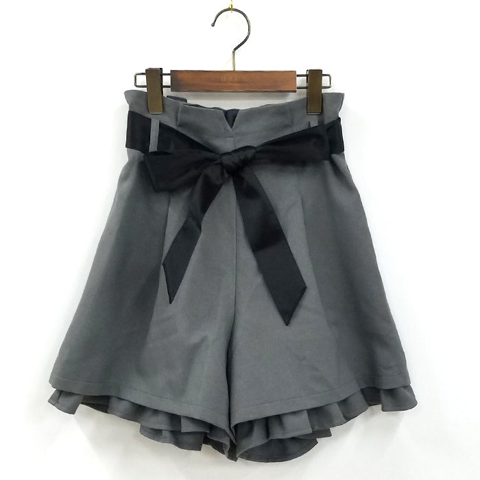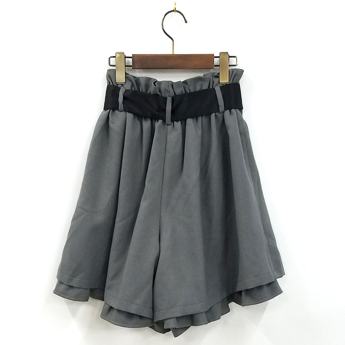 リボンデザインのベルト、裾のフリルがガーリーなフレアキュロットです。ハイウエストのデザインで、インスタイルもおすすめです。
