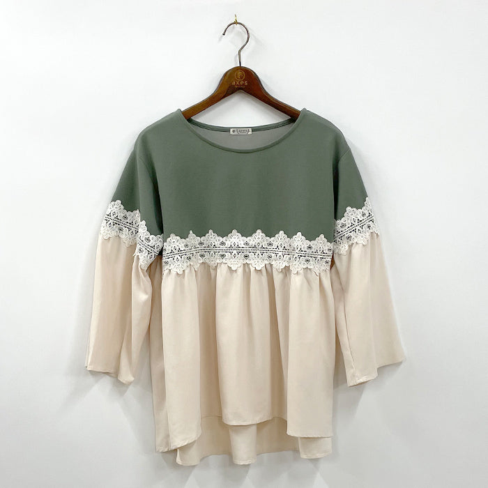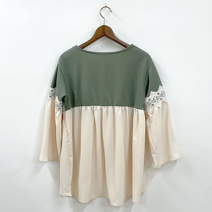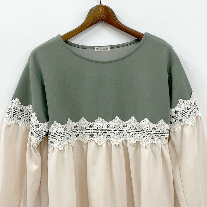 大ぶりのレースが目を惹く、上下で異素材を組み合わせたチュニックです。