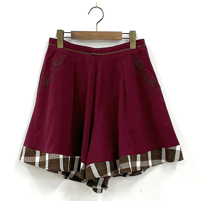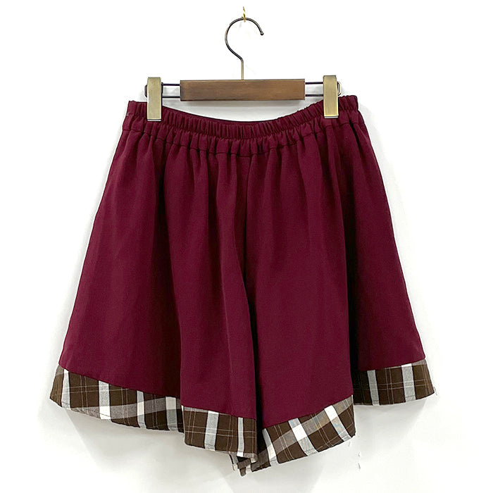 柄とのバイカラーがポイントのフレアキュロットです。ニットやカーディガンなど、無地ものや編み柄ものと合わせやすいデザイン。たっぷりしたフレア分量で、スカート見えするのもポイントです。